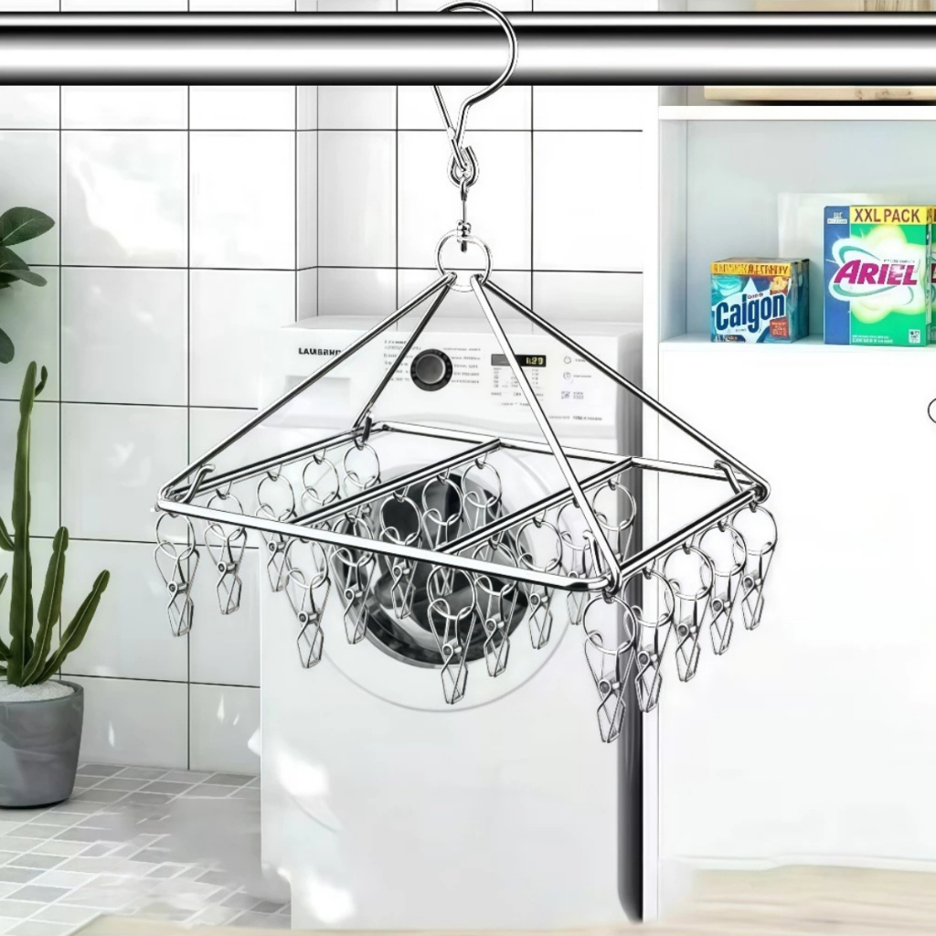 Varal 30 Prendedores Roupa Bebe Calcinha Cueca Dobrável Inox Seguro E Resistentes Pratico E Retrátil