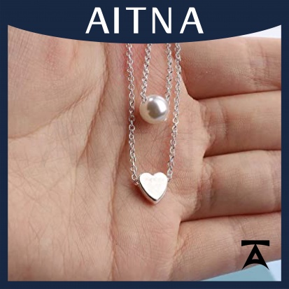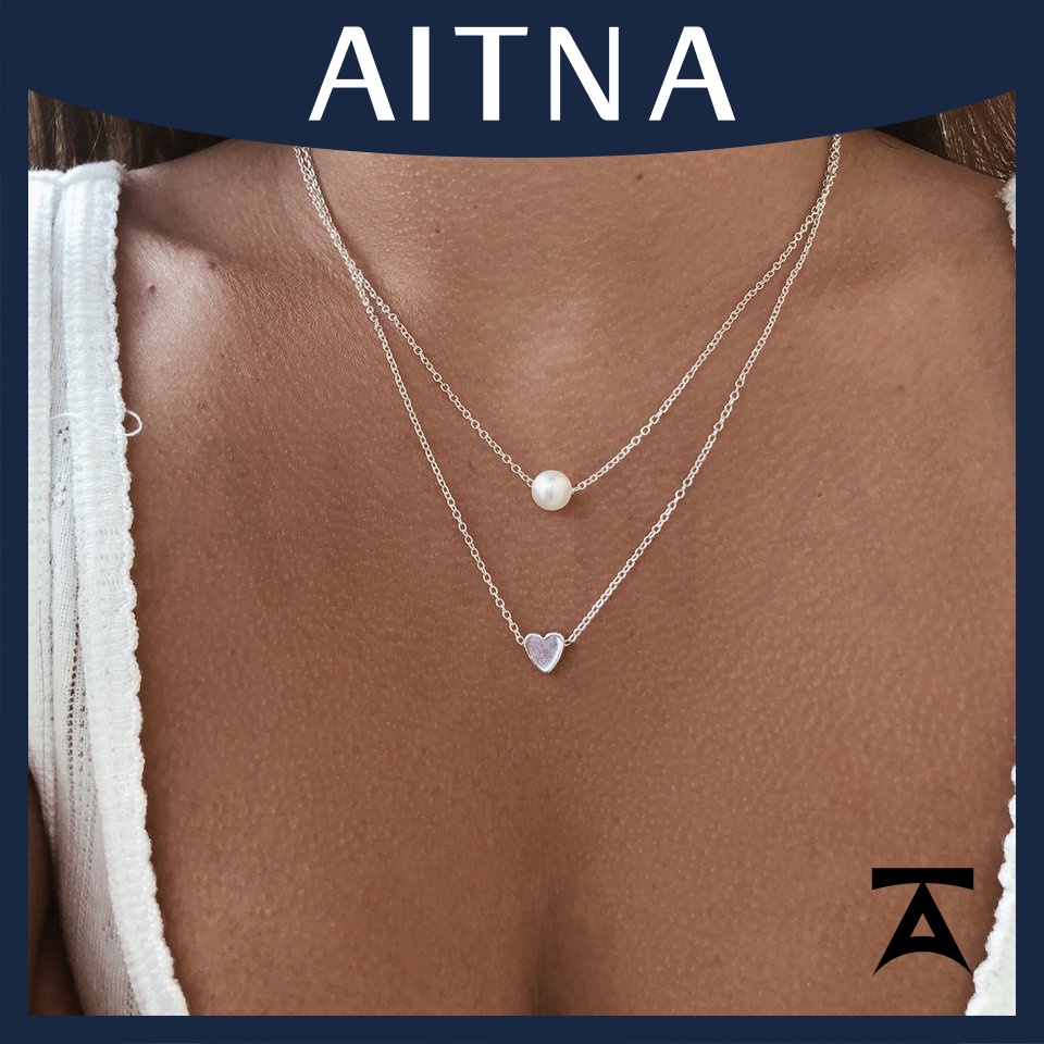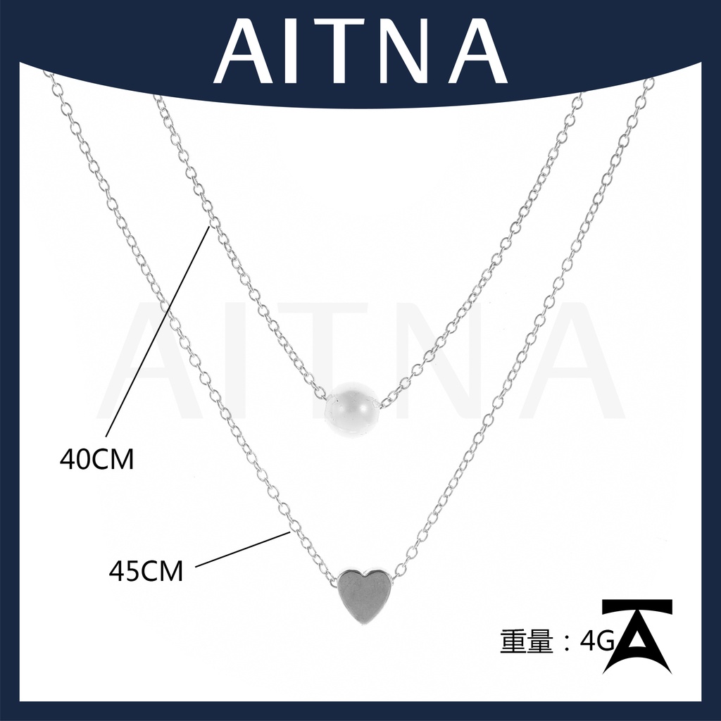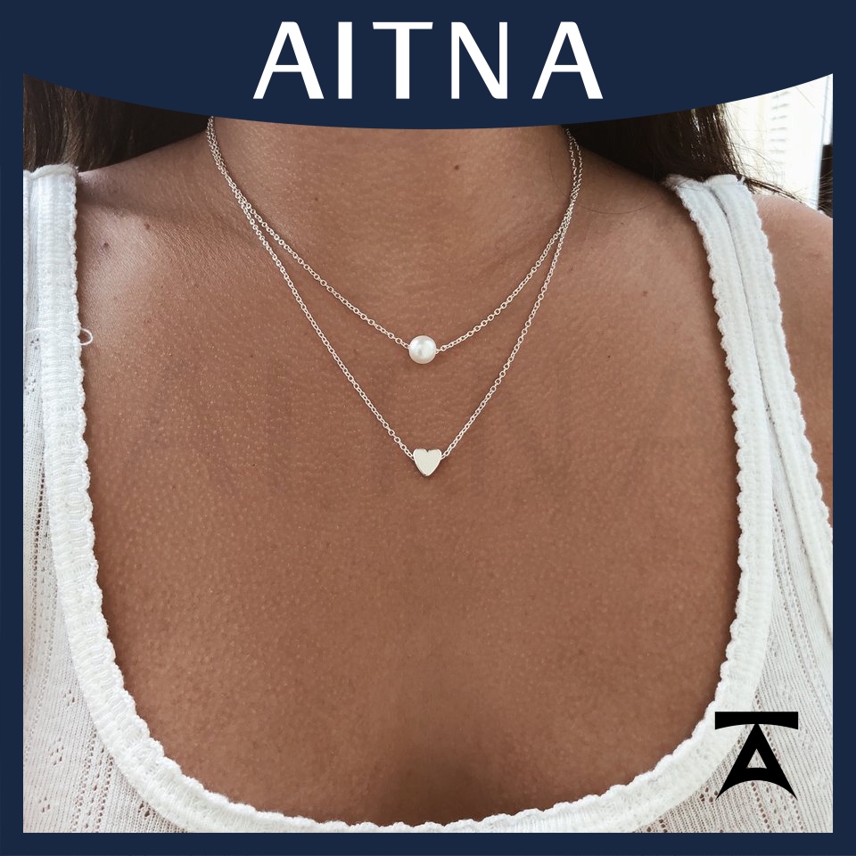 Aitna Colar Pingente De Pérolas Em Camada Coração Prata Corrente Dupla Para Mulheres