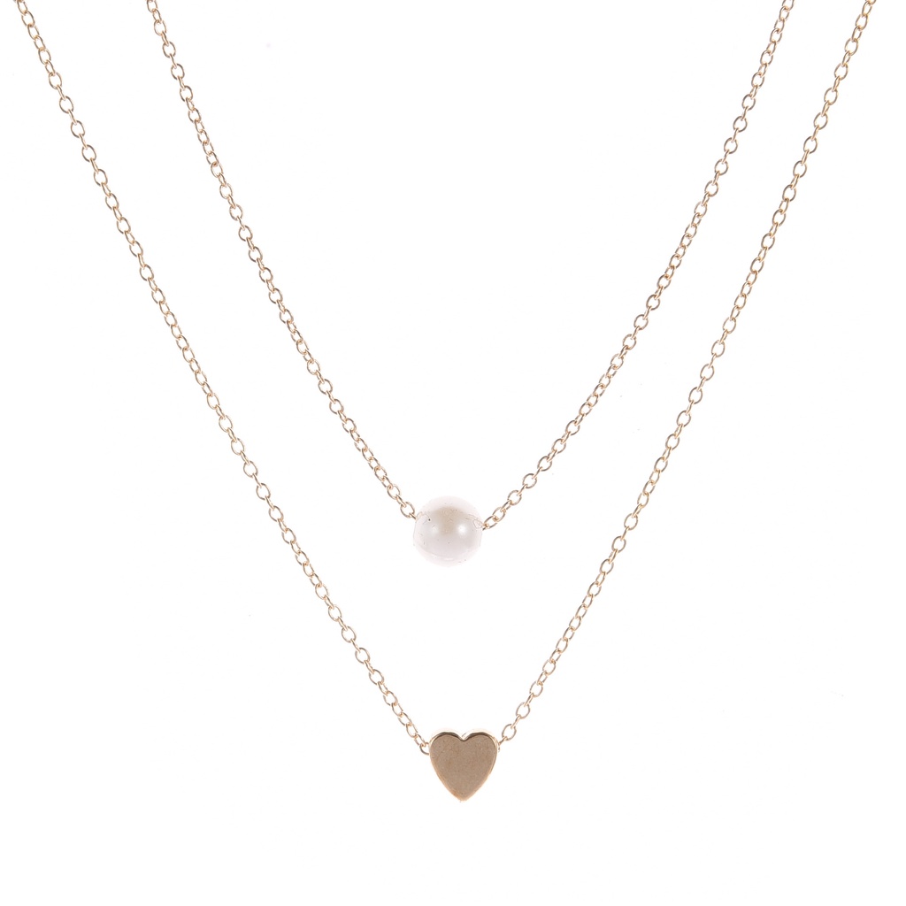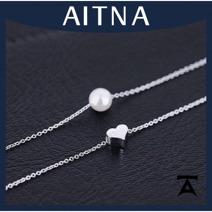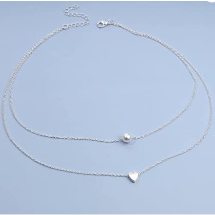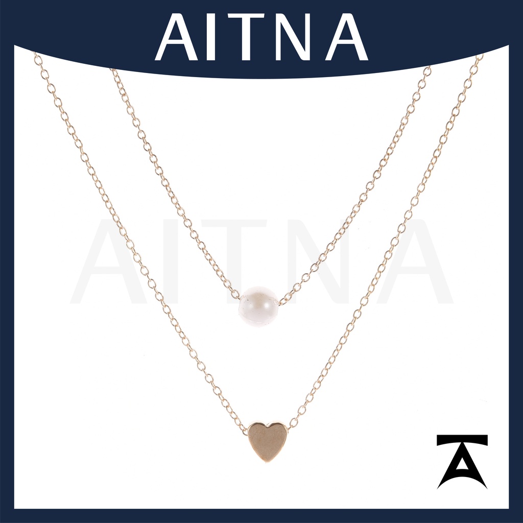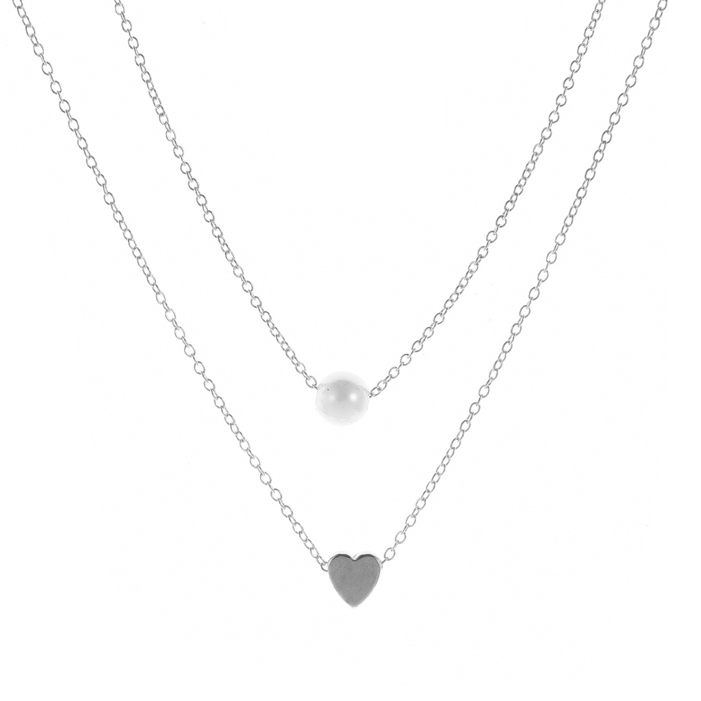 Aitna Colar Pingente De Pérolas Em Camada Coração Prata Corrente Dupla Para Mulheres