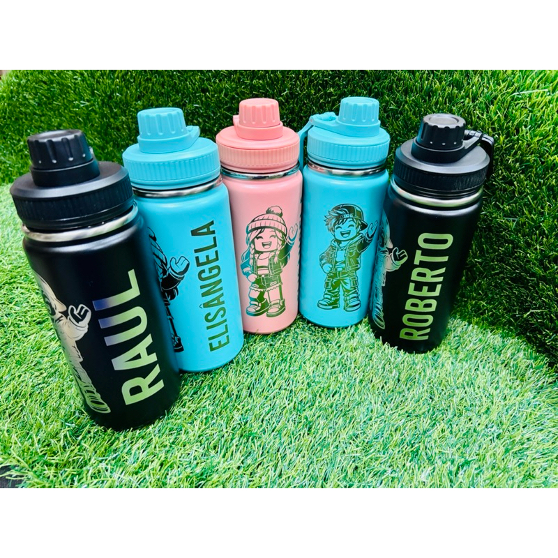 Kit 1 / 3 / 5 - Garrafa térmica 550ml + Nome Gravação Laser - Personalizada - Squeeze