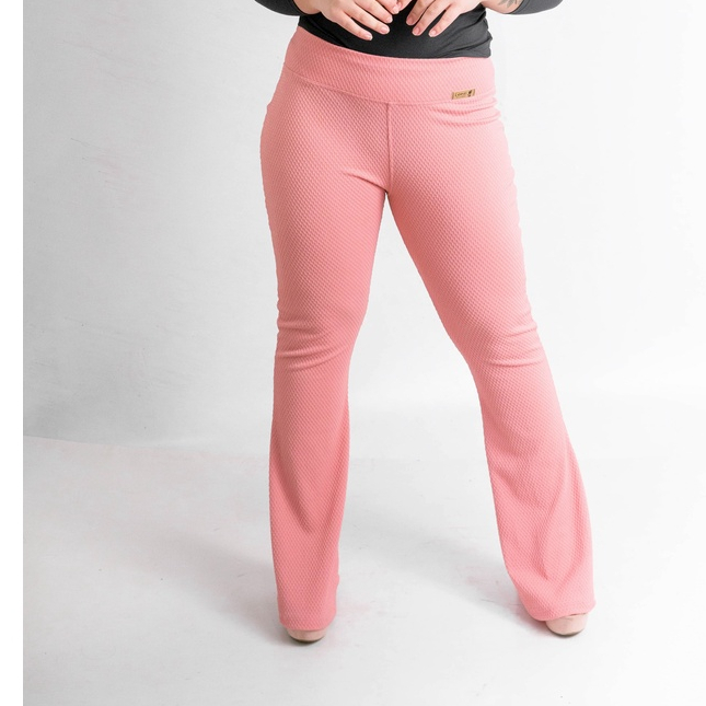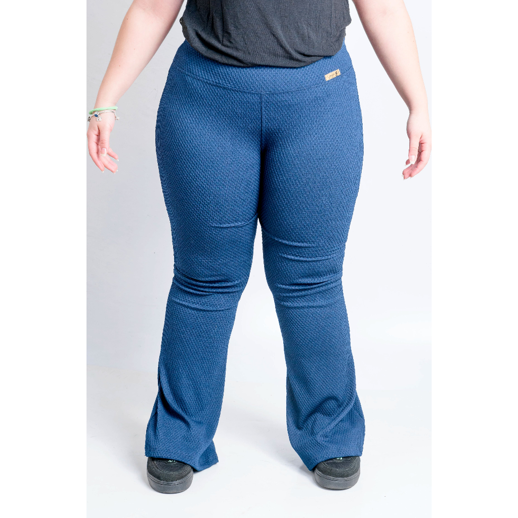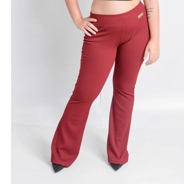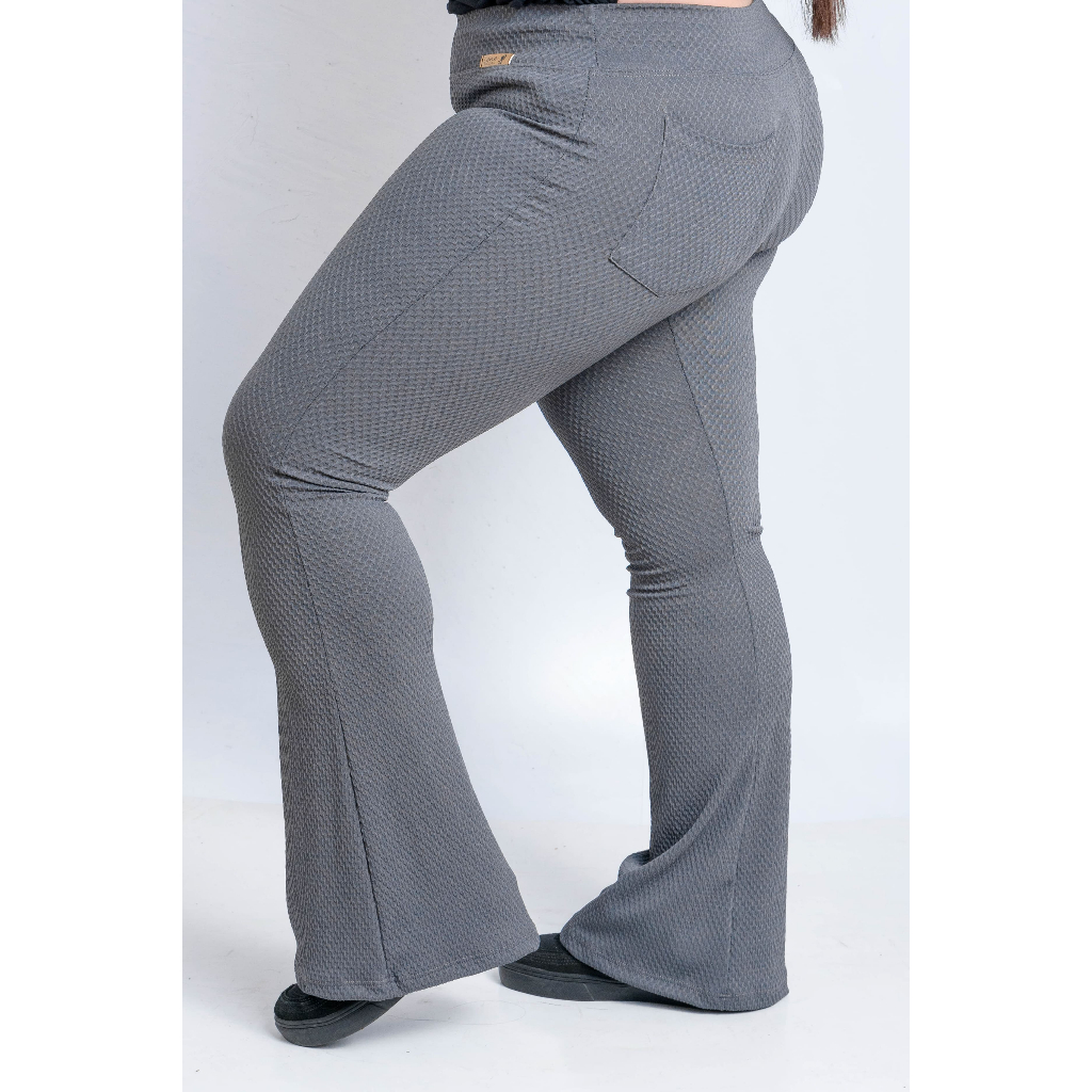 Calça Flare Com Bolso Colmeia Boca de Sino Bailarina Cintura Alta