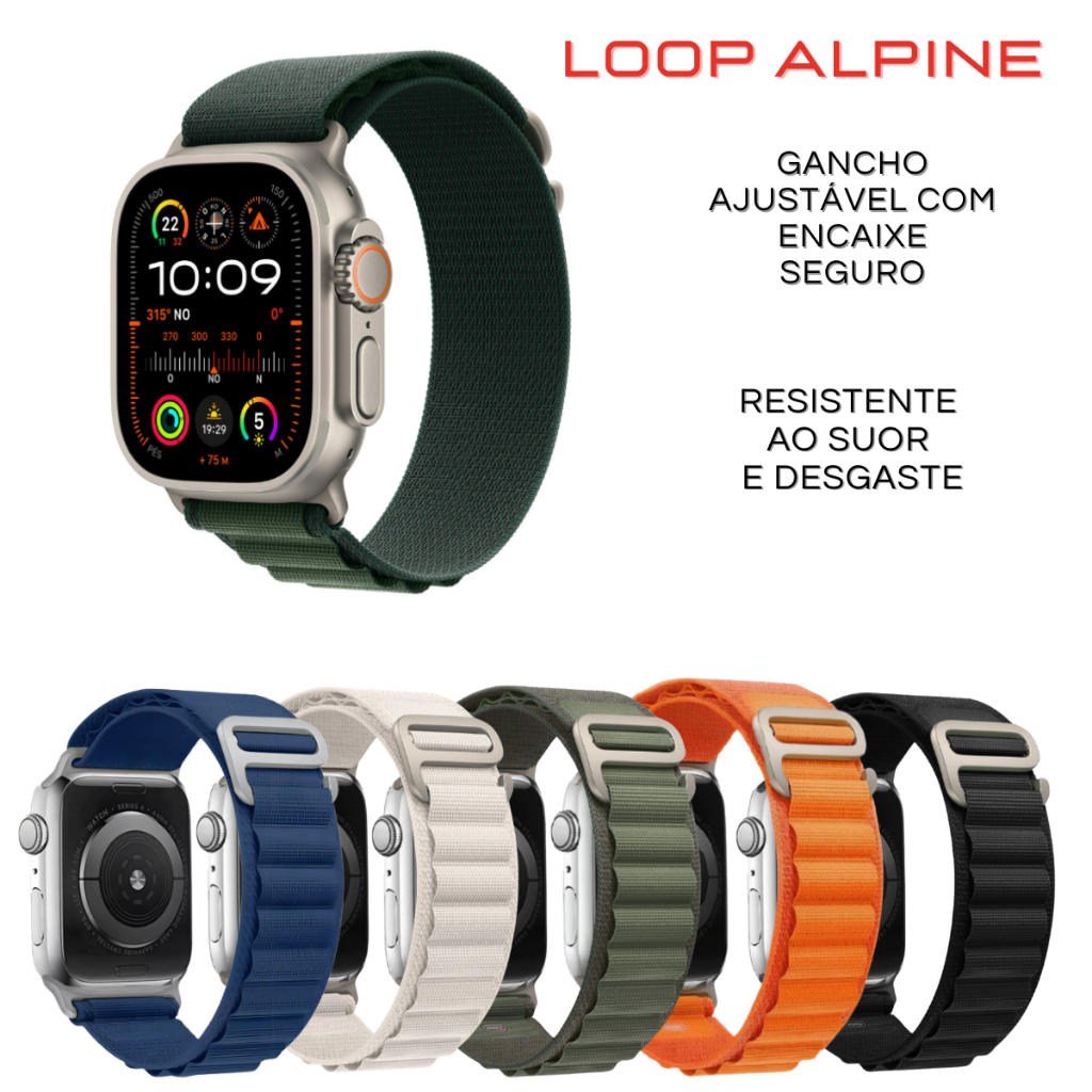 Pulseira Smartwatch Loop Trail Nylon Velcro Alpine Compatível 44mm 45mm 46mm 47mm ao 49mm