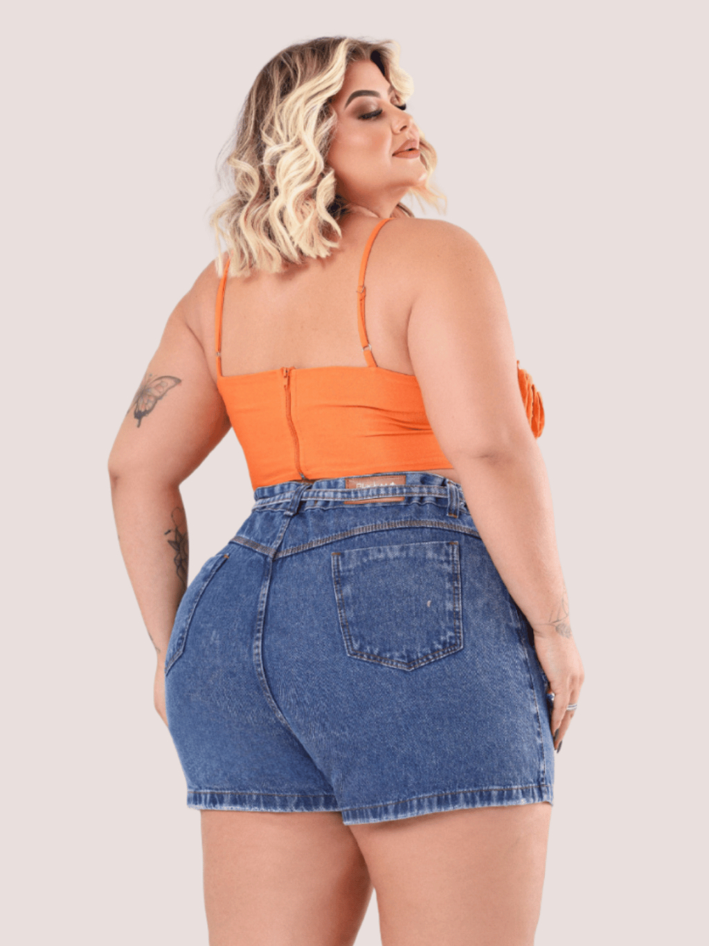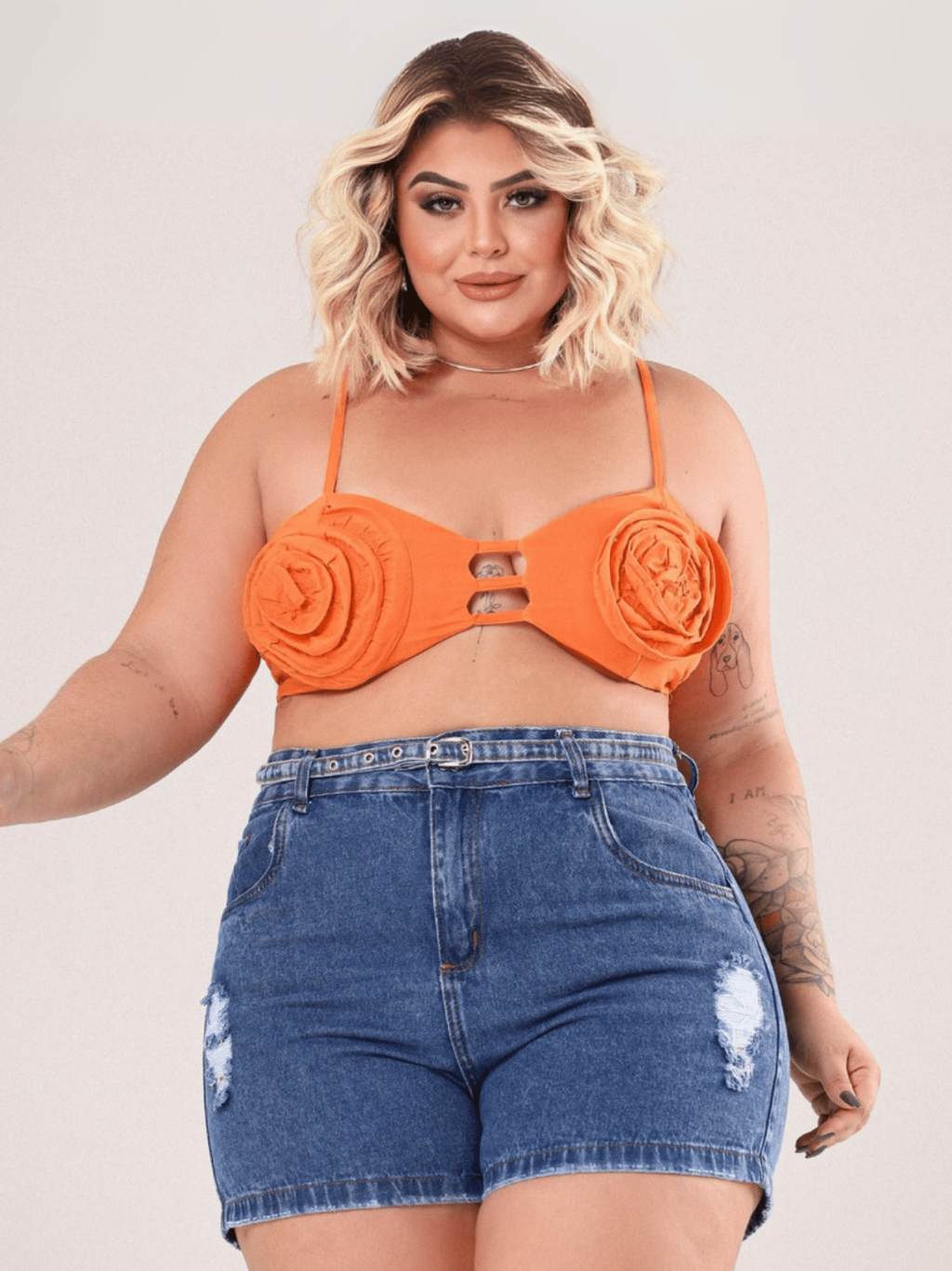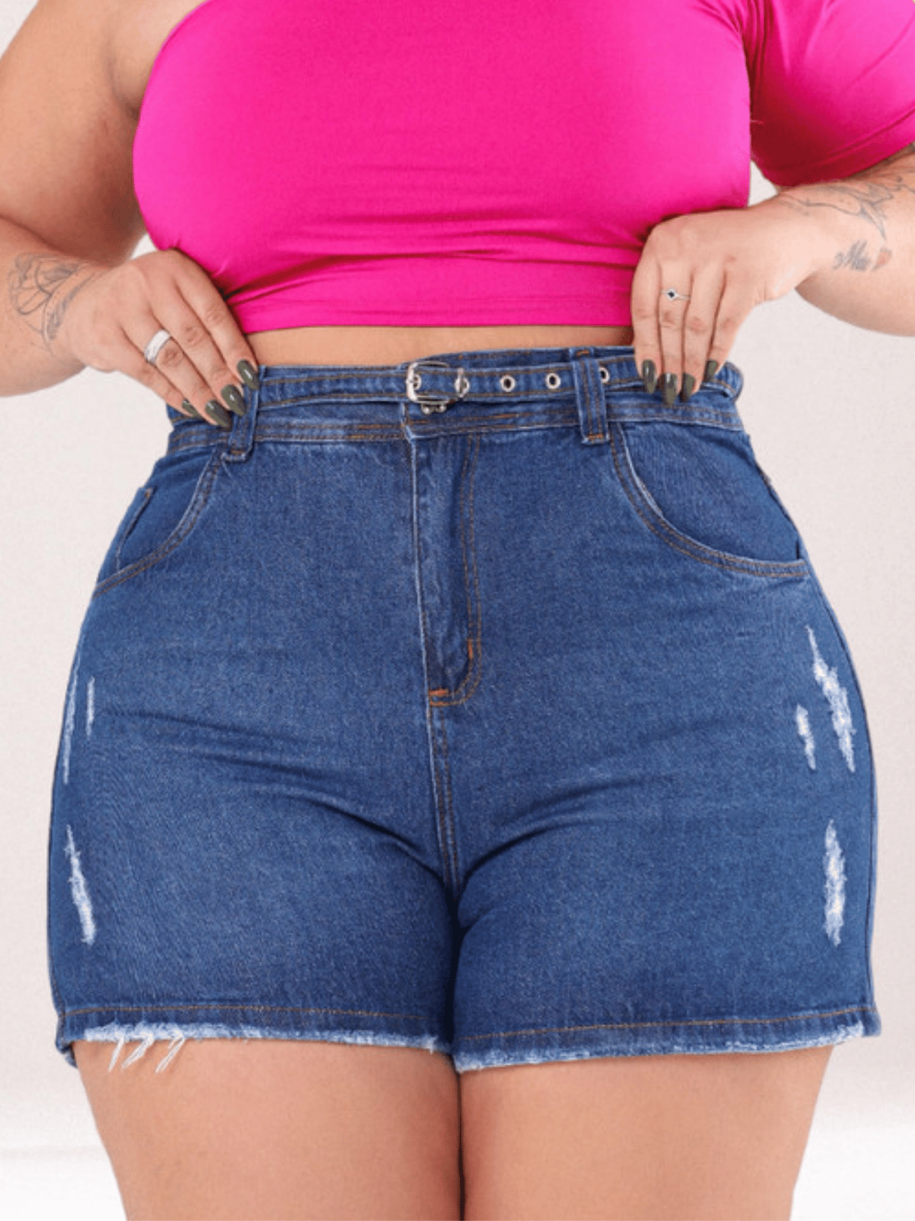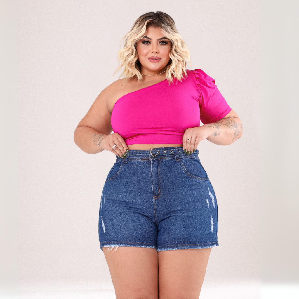 Short Jeans Feminino Plus Size Shorts Cintura Alta Algodão Moderno com Cinto