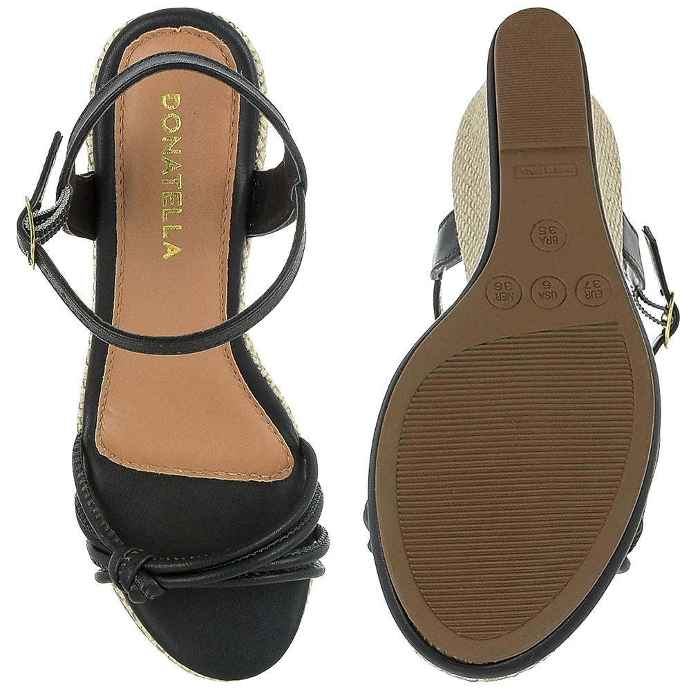 Sandália Anabela Feminina Confort Primavera Verão Cores Colorida Juta Nó Fivela Ajustavel com Elastico Novo Original