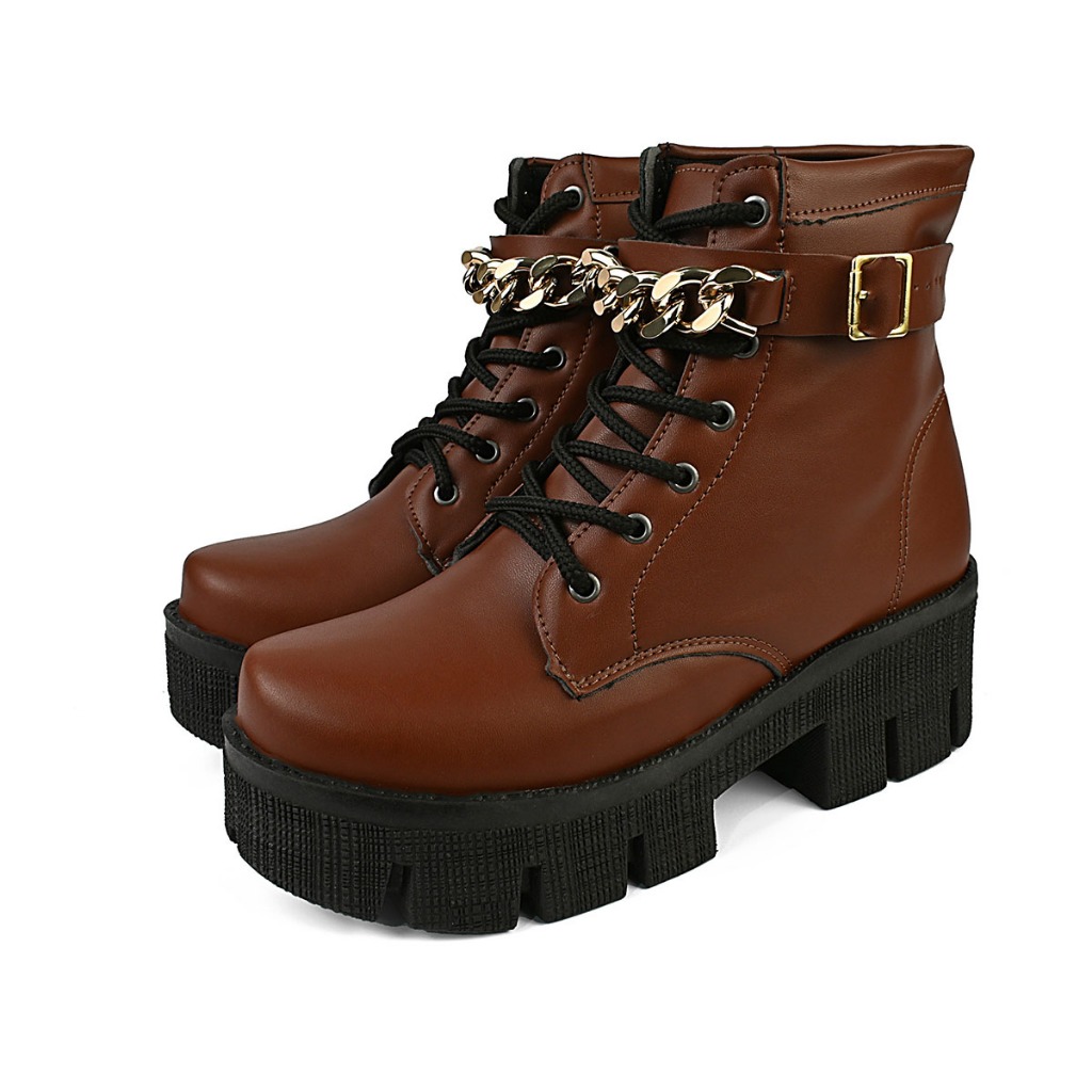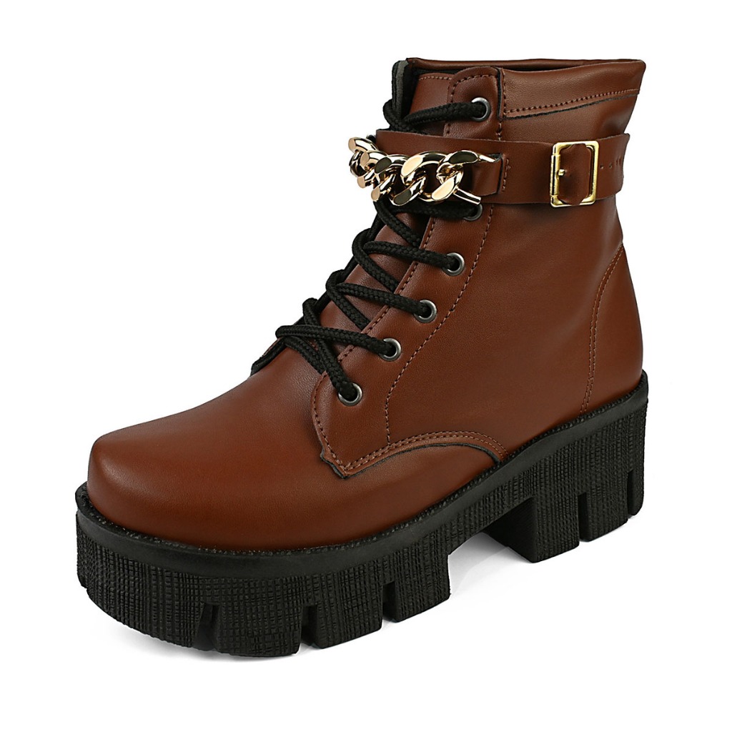 Coturno Feminino Bota Corrente Confortável Macia Plataforma Preto Off White Salto Alto Tratorado Novo