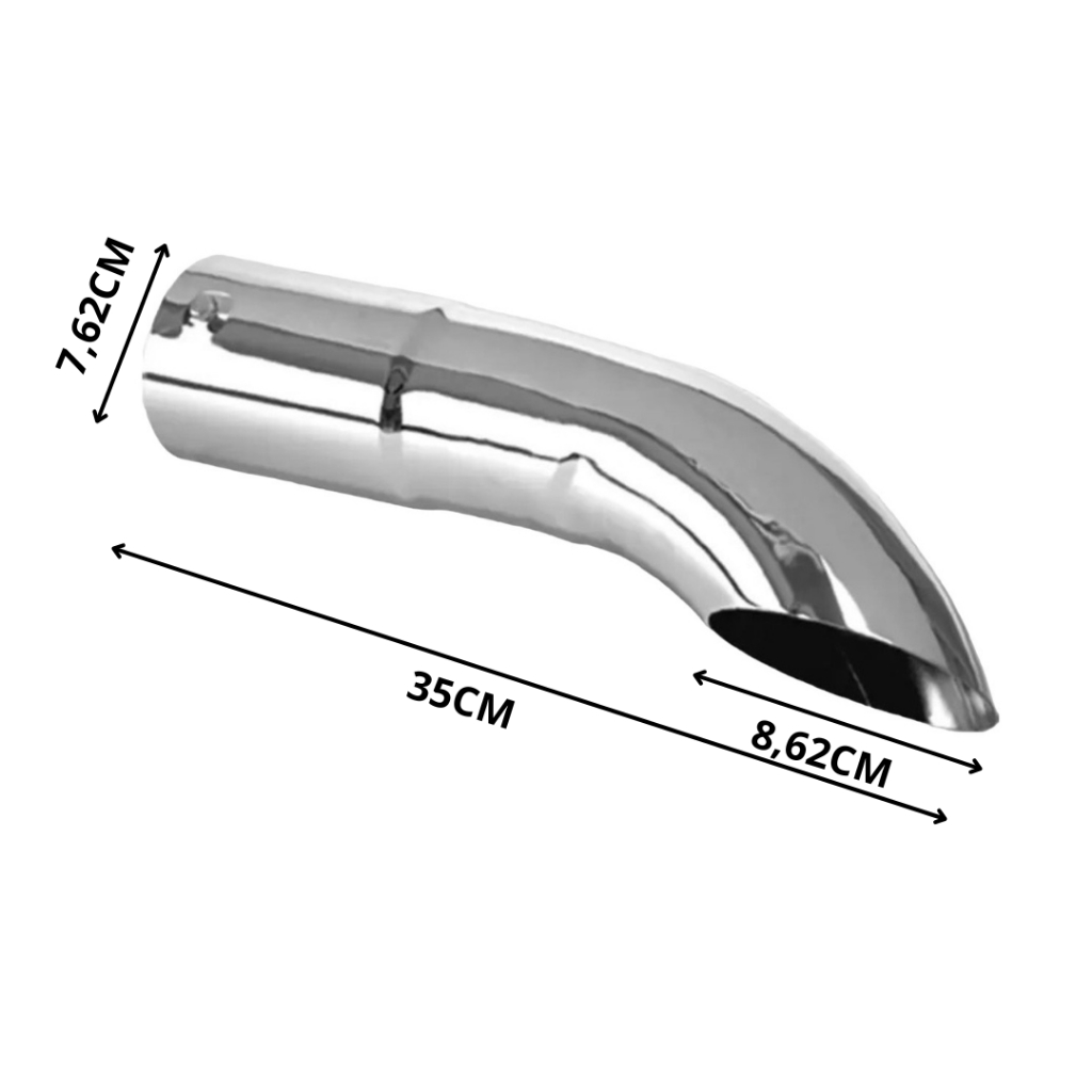 Ponteira Escapamento Caminhão Camionete Metal Cromada 3" x 35cm Polegada - Curva Chanfrada