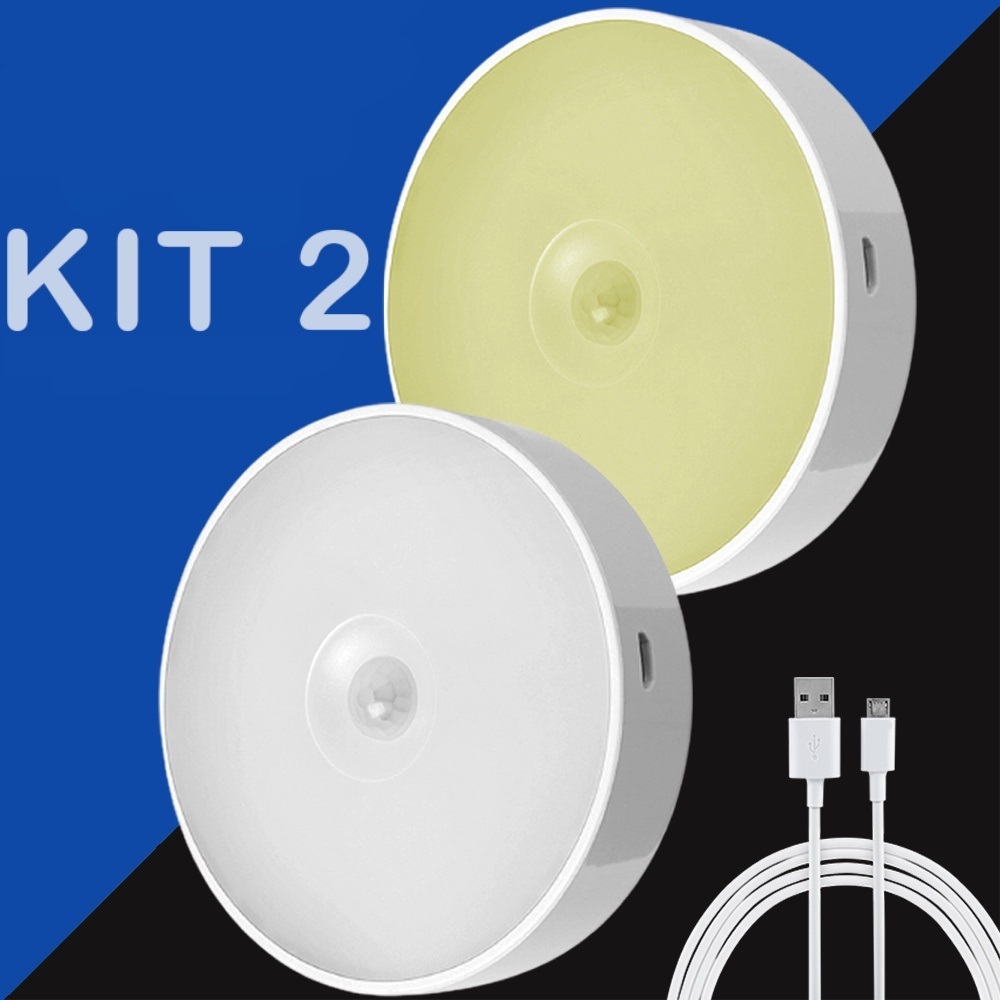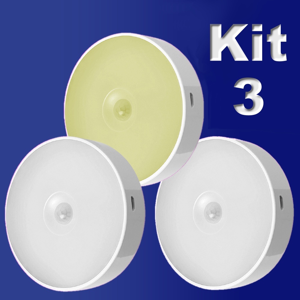 Kit 1-4 Luminárias Lâmpada Led Sem Fio Com Sensor Presença Recarregável