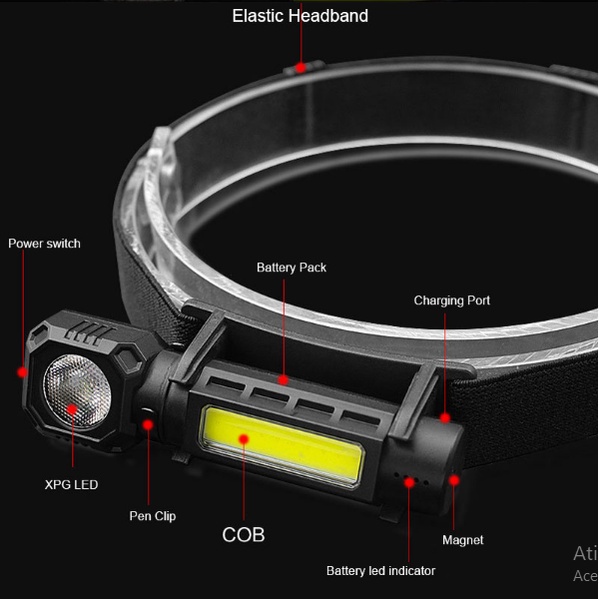 Lanterna De Cabeça Recarregável Led Potente De Foco Liga De Alumínio Para Camping Pesca Prova D'água