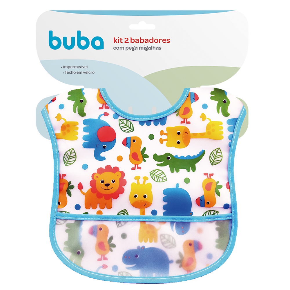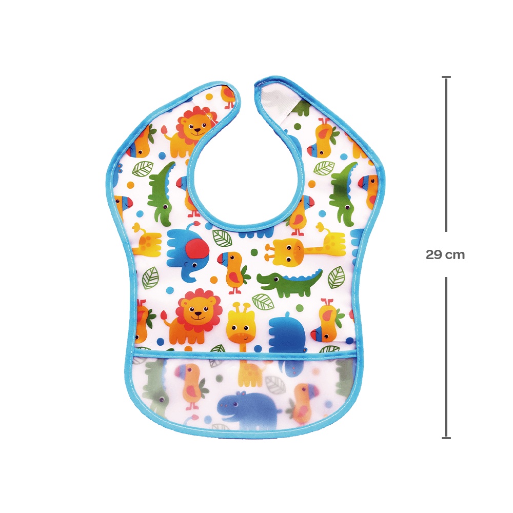 Babador Infantil Bebê com Bolso Pega Migalhas Impermeável Safari Azul - Buba