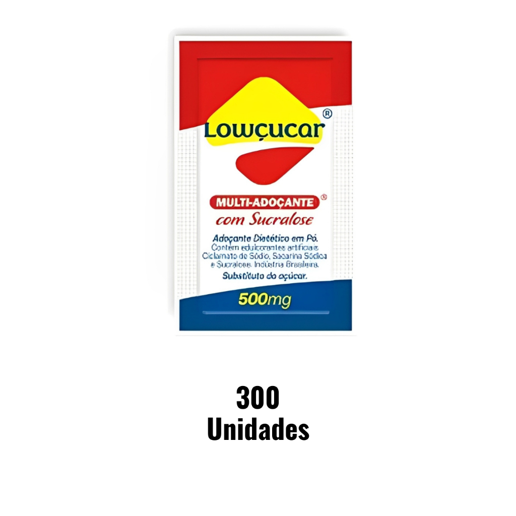 Kit 100, 200 ou 300 Unidades Adoçante Lowçucar Plus Tradicional Sachê de 0.5g Com Sucralose
