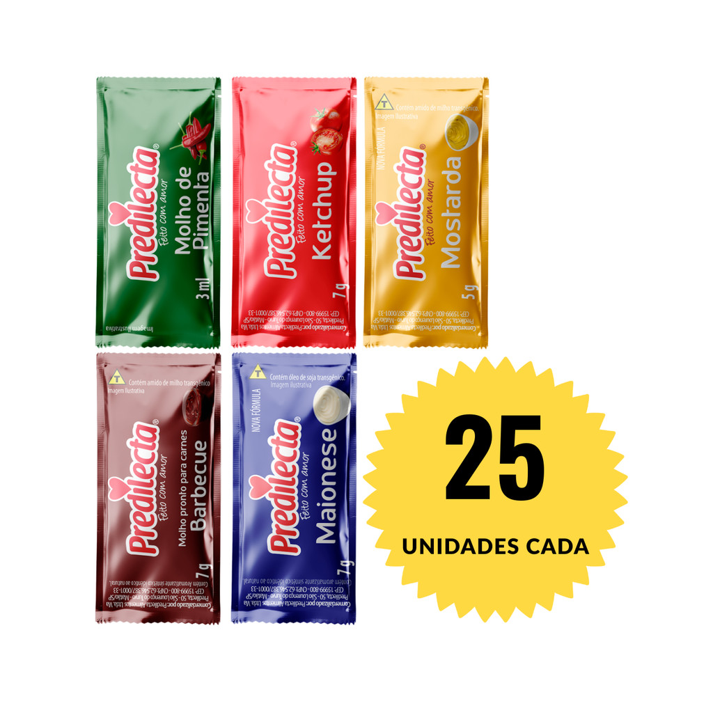 Kit 25 Sache Ketchup Maionese Pimenta Barbecue Mostarda