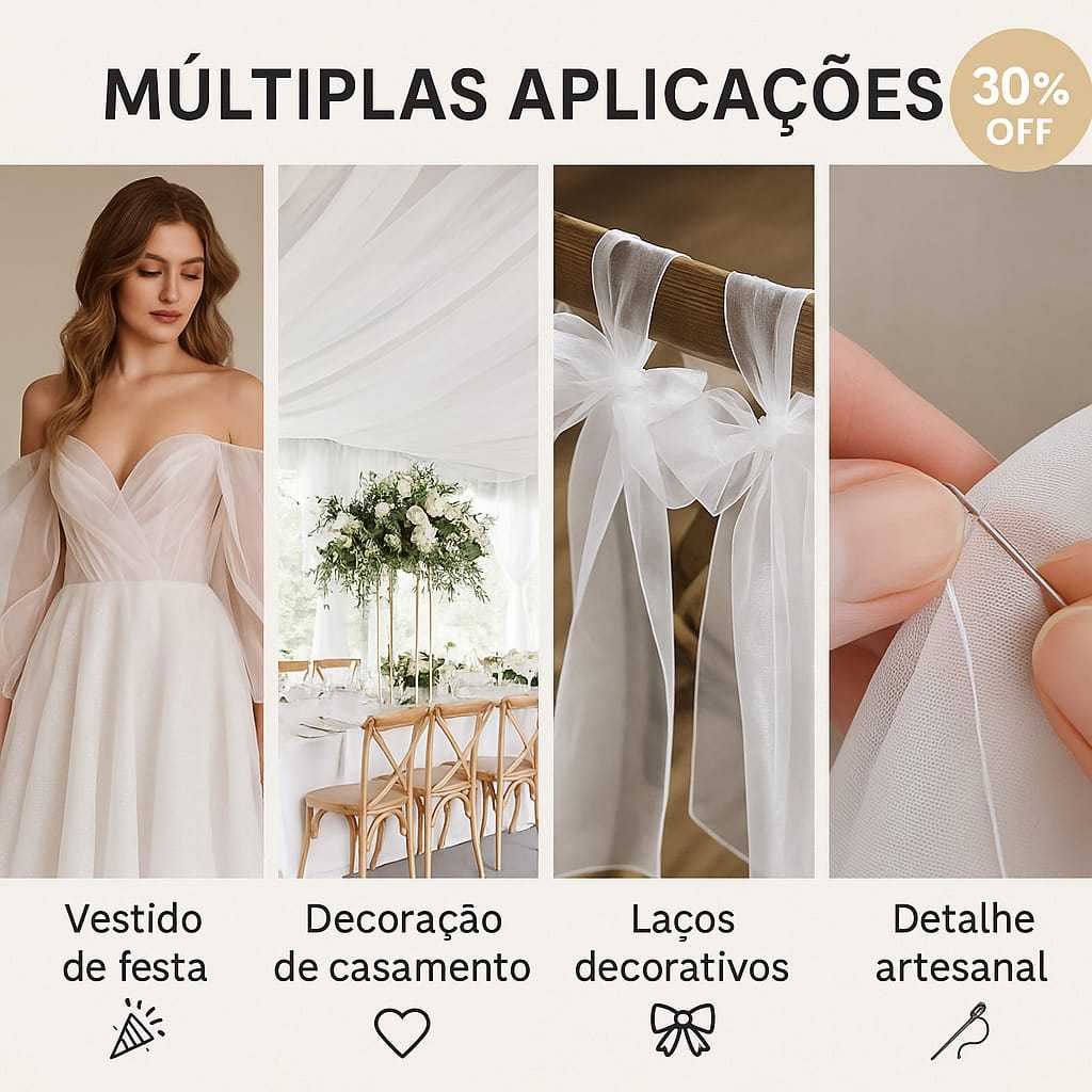 Tecido Organza Cristal Branca 5,00m x 1,50m p/ Decoração 30% OF
