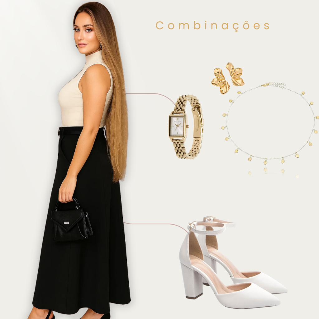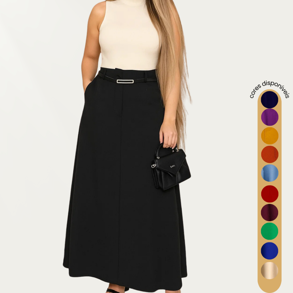 Saia Alfaiataria Longa Social Evangélica Com Bolsos Feminina Elegante Confortável Versátil Moderna