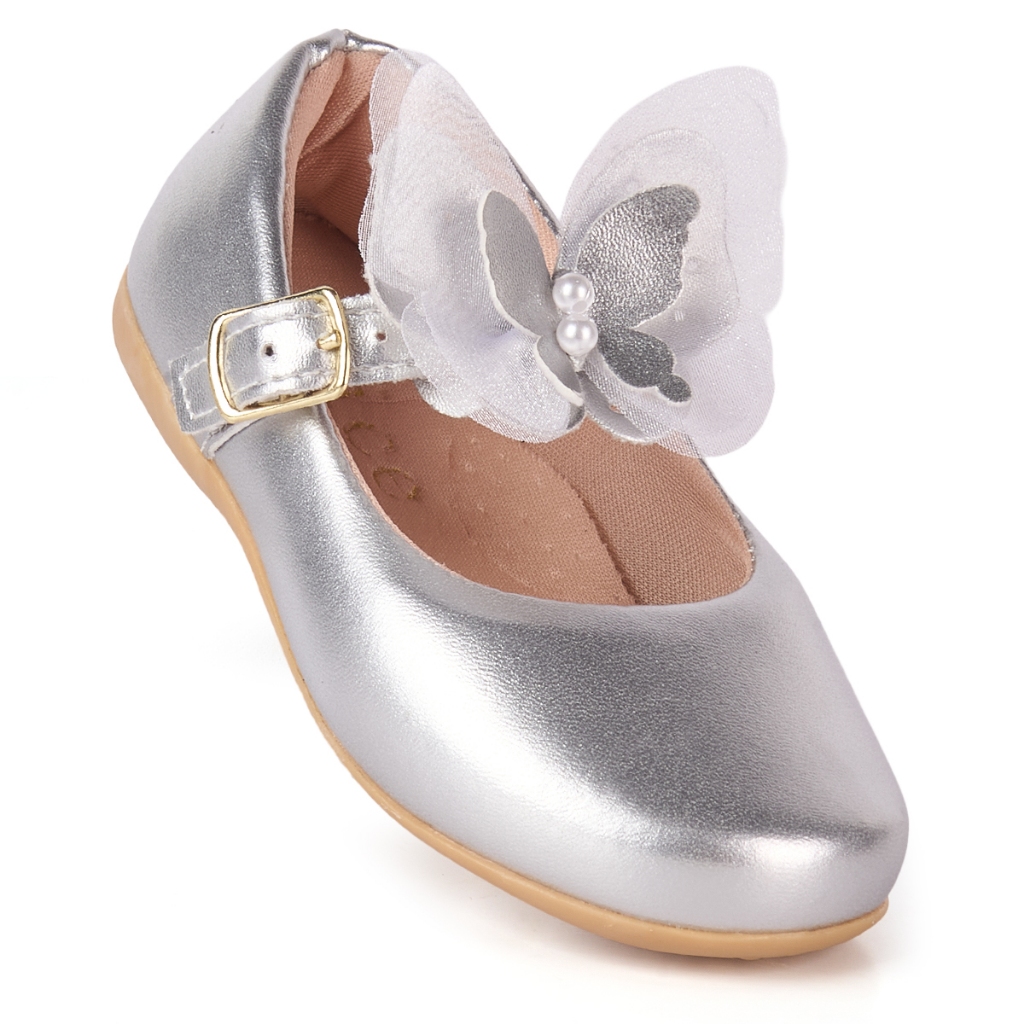 Sapatilha Infantil Menina Laço Borboleta Delicada Confortável Moda Casual Festa Metalizada