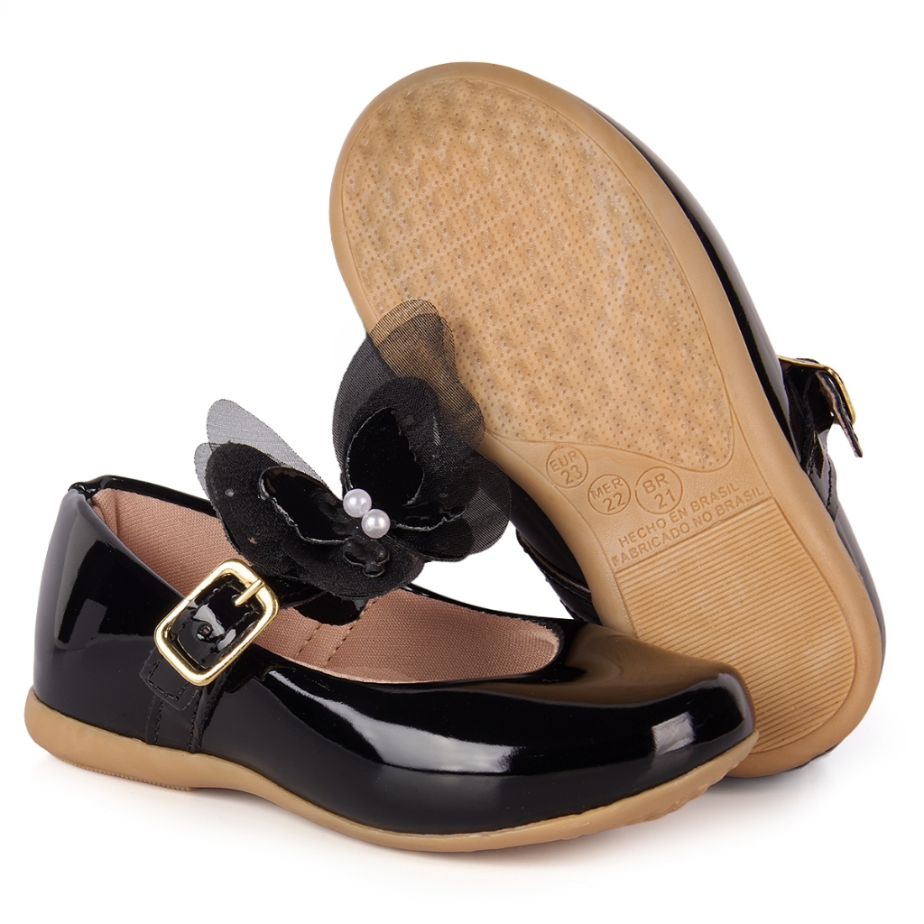 Sapatilha Verniz Infantil Menina Delicada Borboleta Fivela Boneca Confortável Casual Promoção