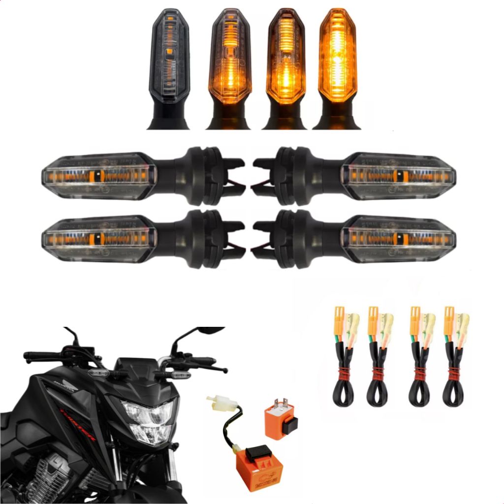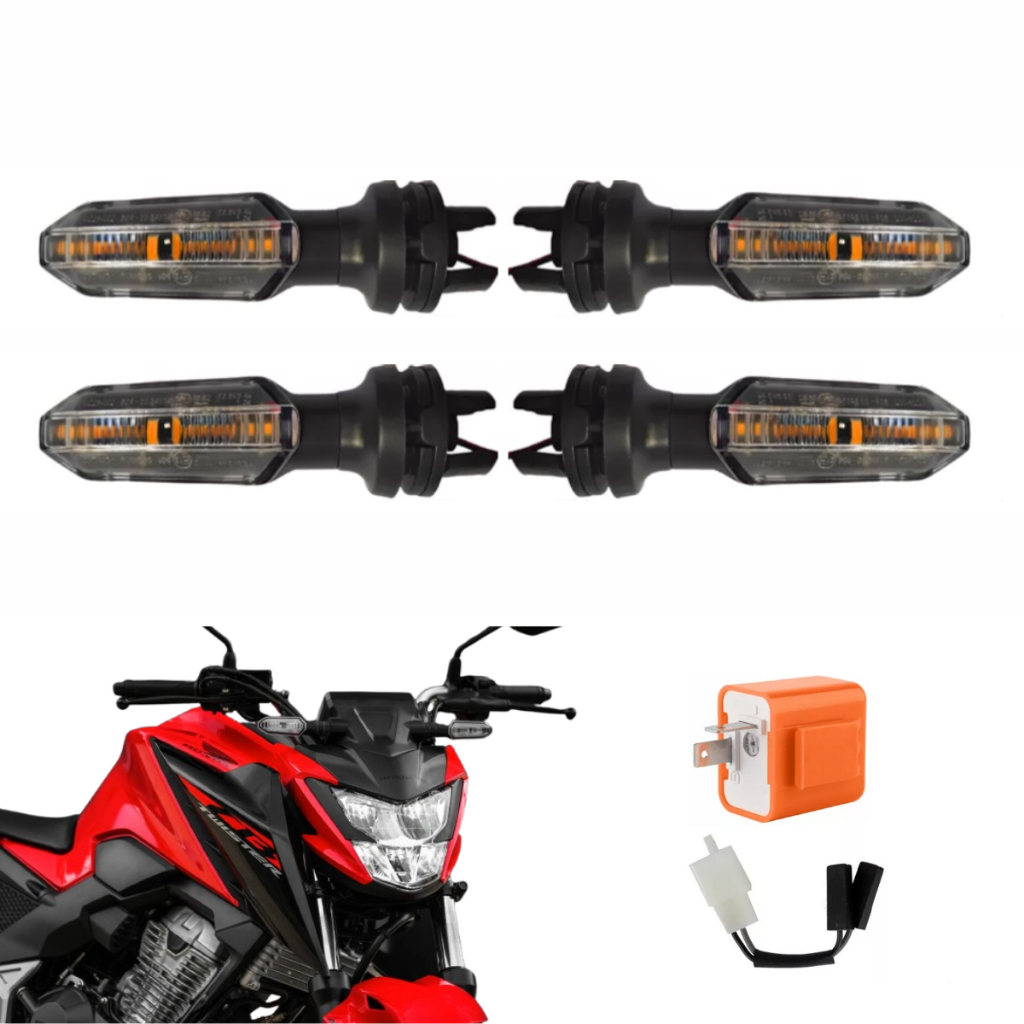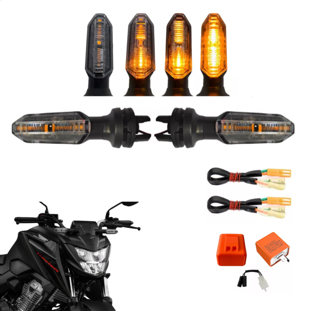 Pisca Seta De Led Sequencial Cb Twister Com Rele E Adaptador Plug Sem Cortar Fio