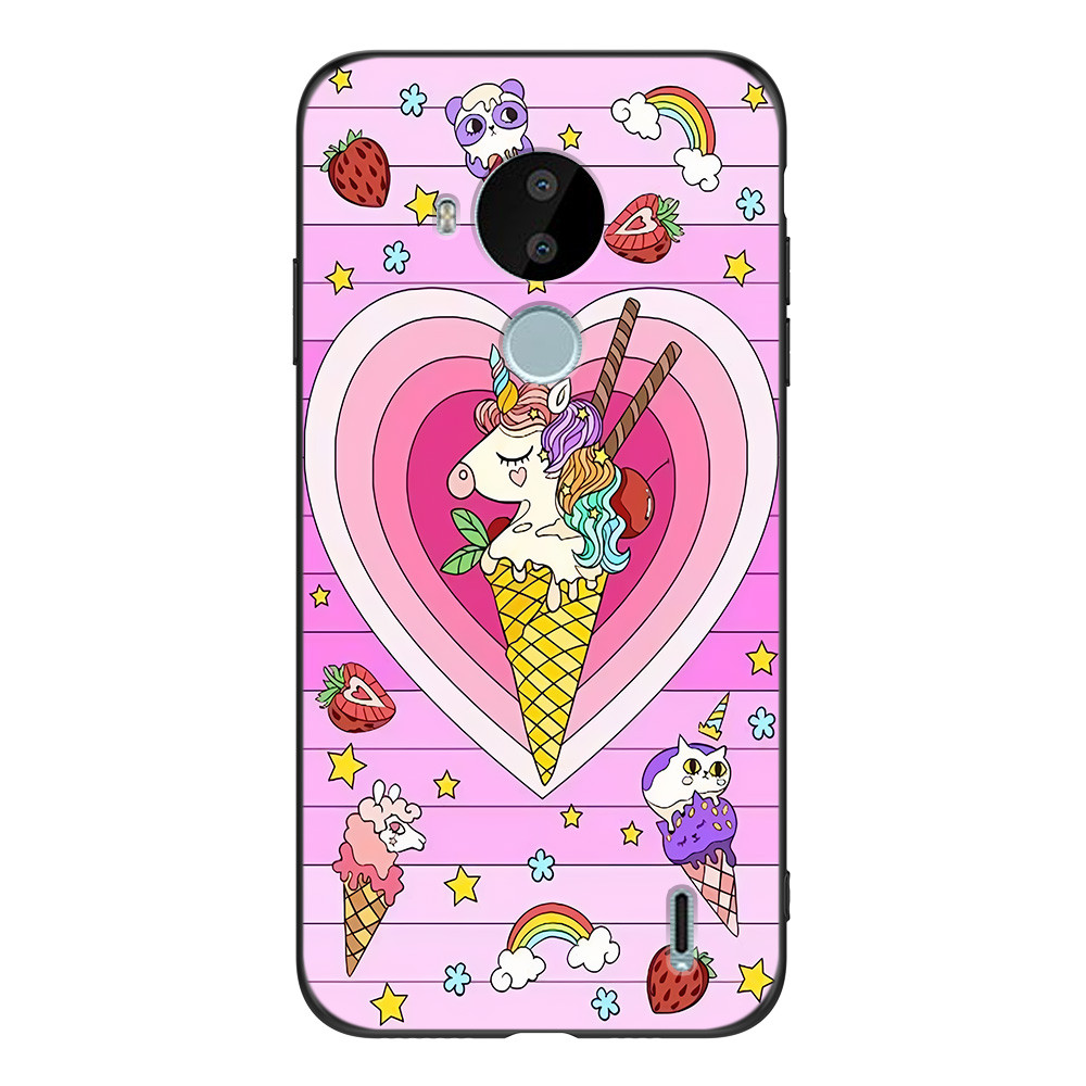 Caso Para nokia c30 Telefone Capa Traseira Silicone Macio Preto Tpu Rosa Engraçado Bonito Dos Desenhos Animados Unicórni