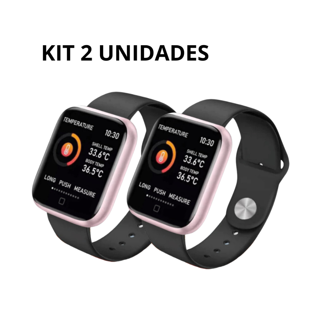 Kit 2 Smartwatch Relógio P80 Pulseira Silicone Metal Sports