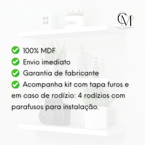 Mesa de Cabeceira em MDF com rodizio plástico 50x30x24,5cm universal
