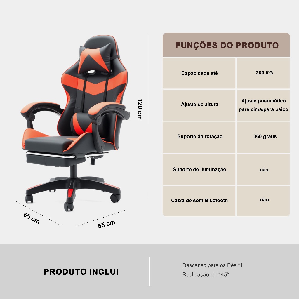 👍🔥Cadeira Gamer com Caixa de Som Bluetooth + Fita de LED 128 Cores – Experiência IMAX Imersiva em Casa!