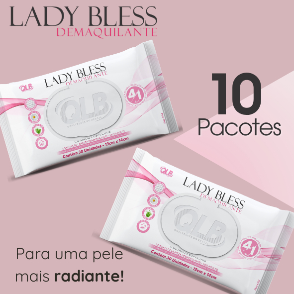 Kit com 10 Lenços/Toalhas Umedecidas Demaquilante LadyBless c/ 30 Toalhas Cada – Tampa FlipTop
