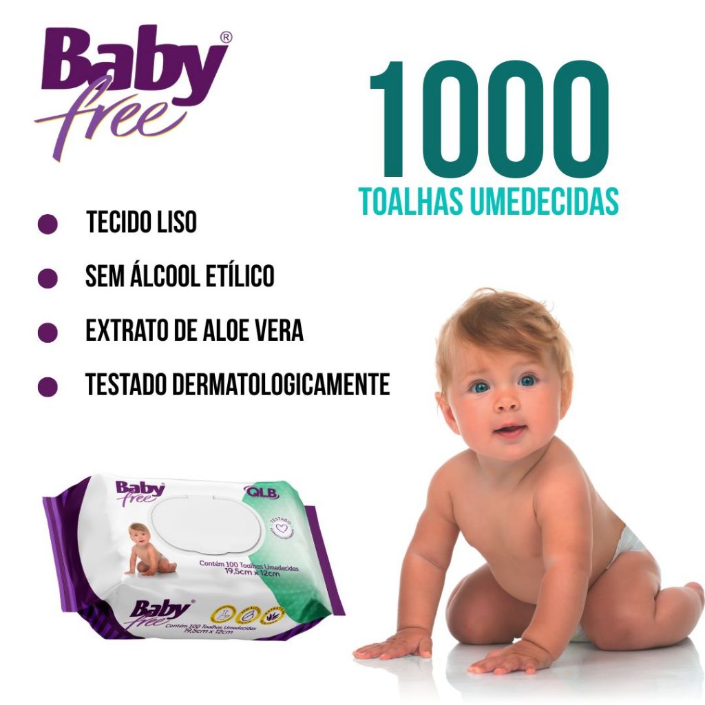 Caixa com 10 Lenços/Toalhas Umedecidas Baby Free c/ 100 Unidades Cada – Tampa FlipTop