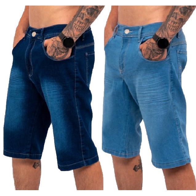 Kit 2 Bermudas Jeans Masculina Lycra Elastano