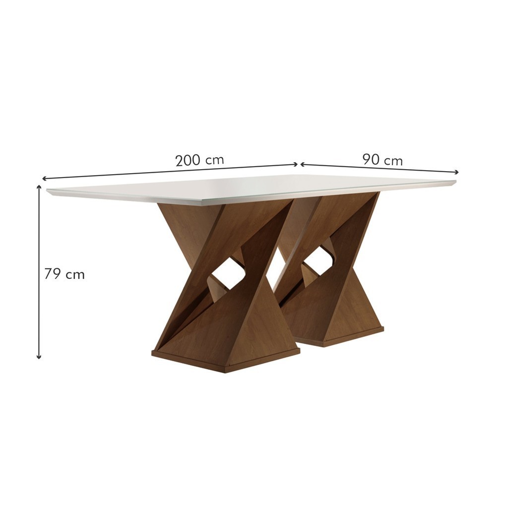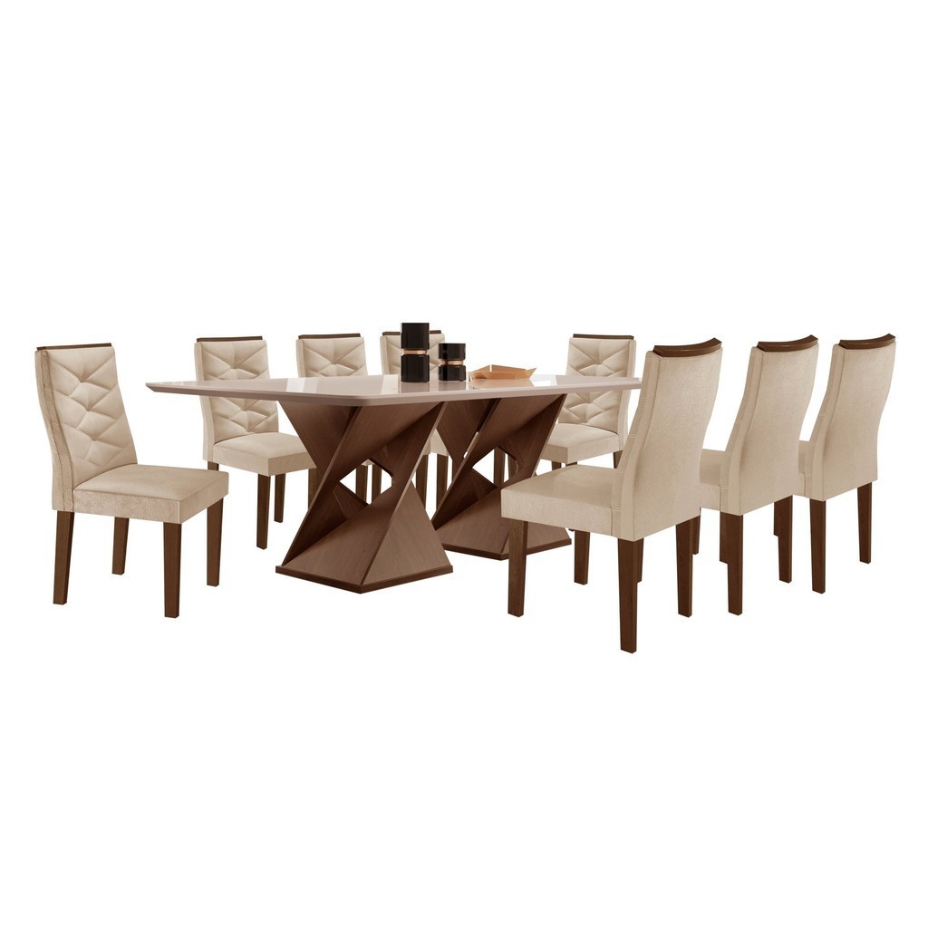 Conjunto Mesa com Vidro e 8 Cadeiras 200cmx90cm Barcelona Yescasa Chocolate/Off White/Suede Pena