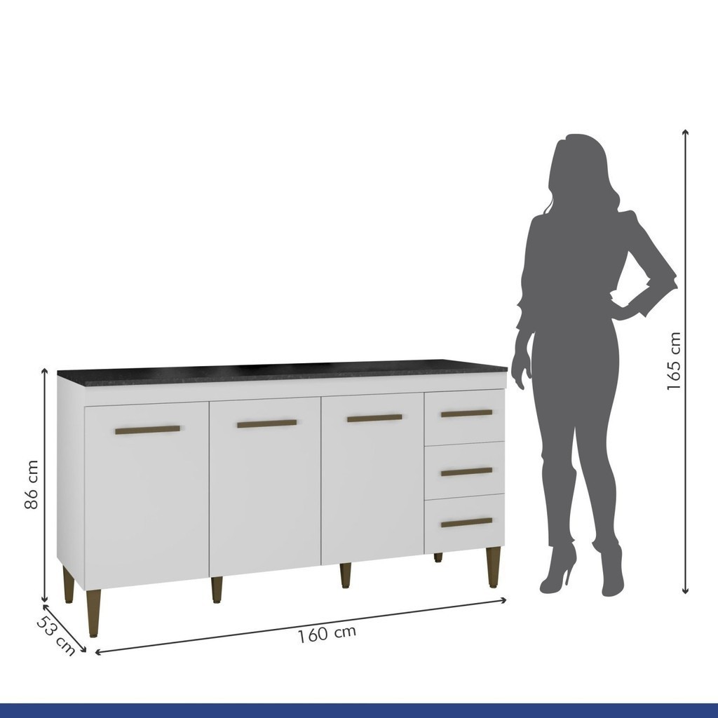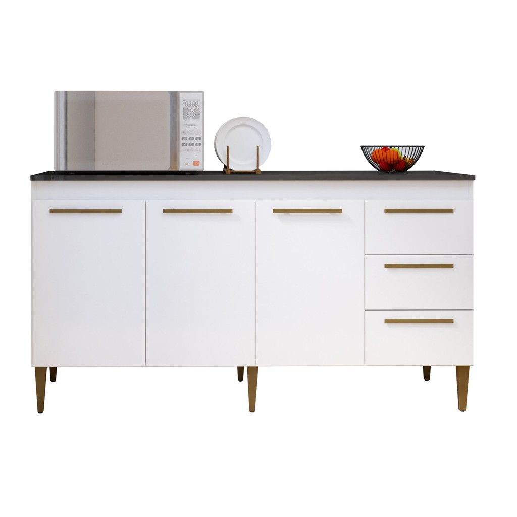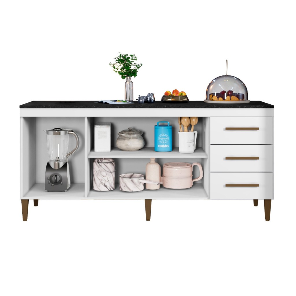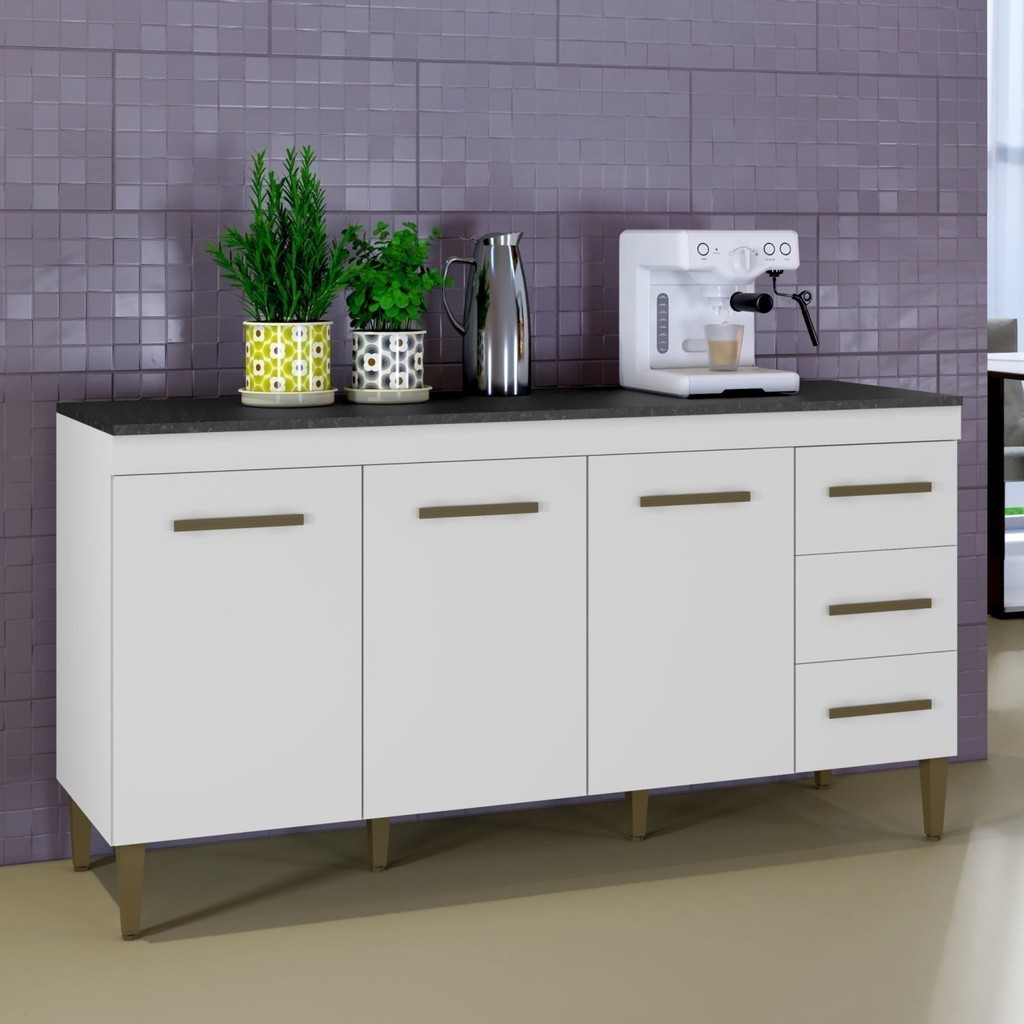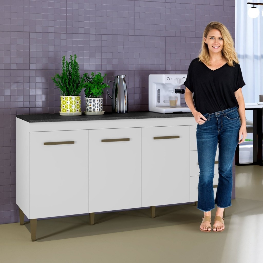 Balcão Atenas 3 Portas e 3 Gavetas Branco