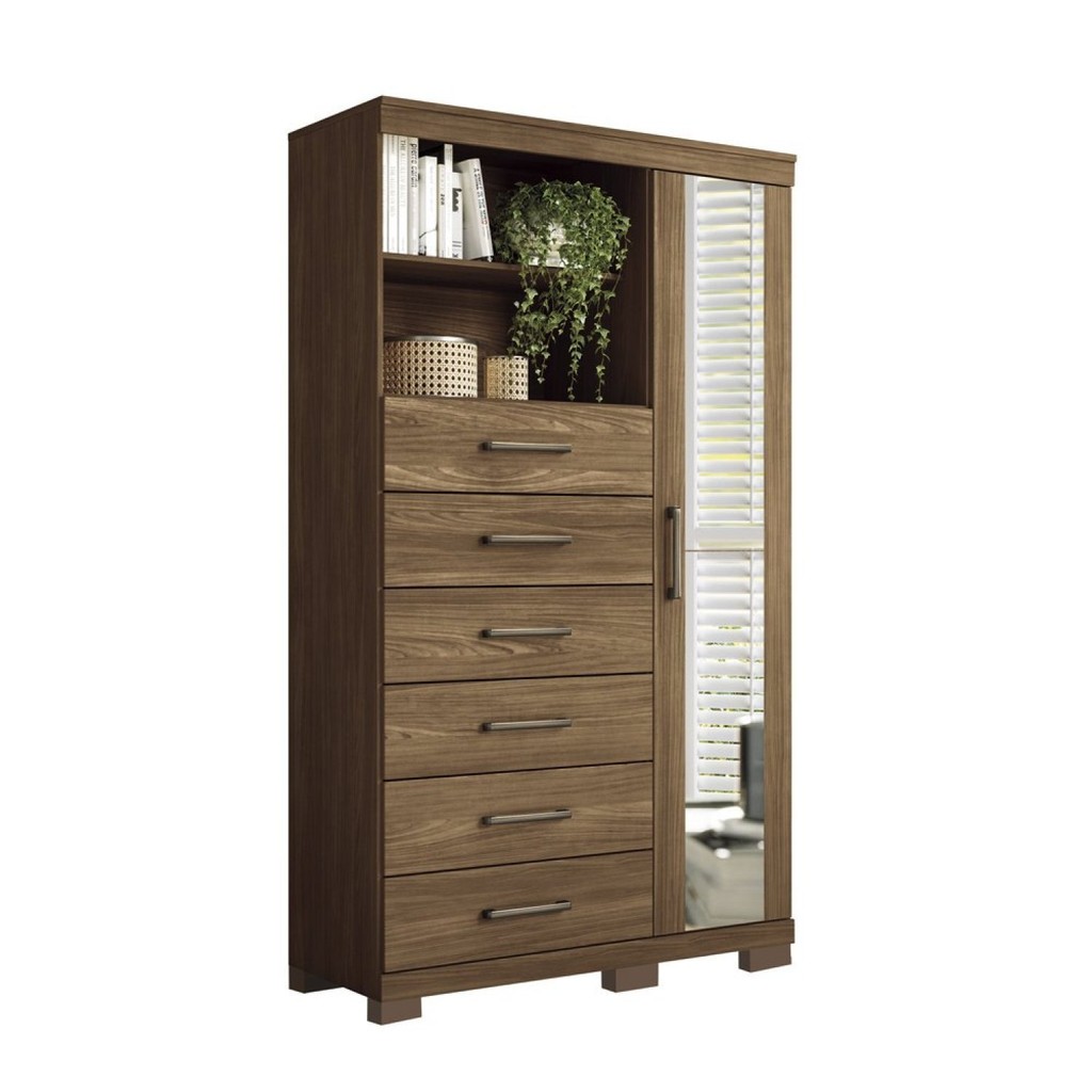 Multi-cômoda 1 Porta 6 Gavetas Marabá com Espelho e Pés Jatoba