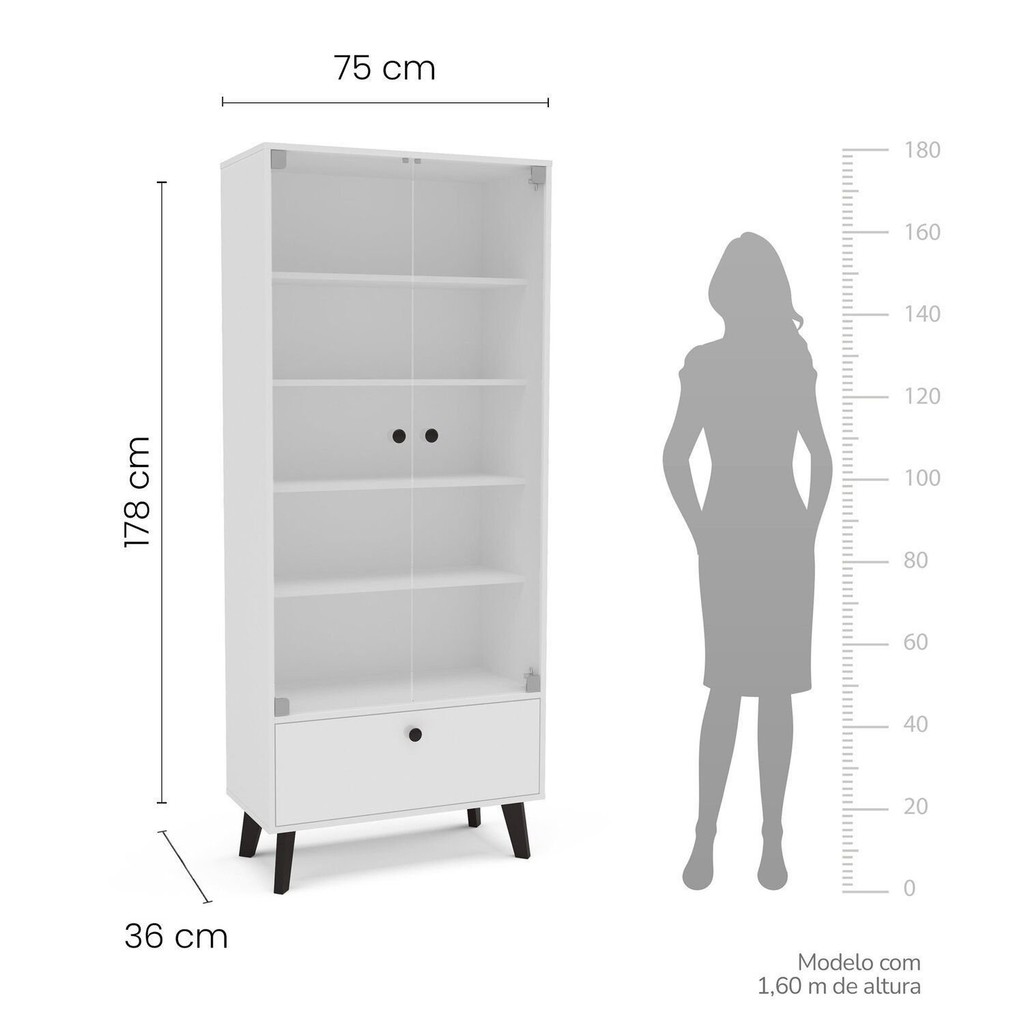 Cristaleira 2 Portas de Vidro 1 Gaveta Londres Branco