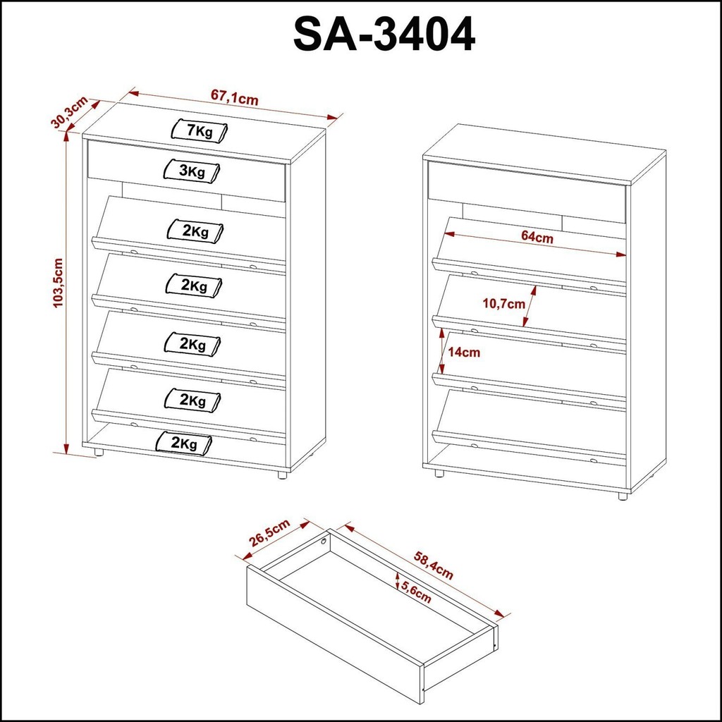 Sapateira 1 Gaveta 5 Prateleiras Sa3404