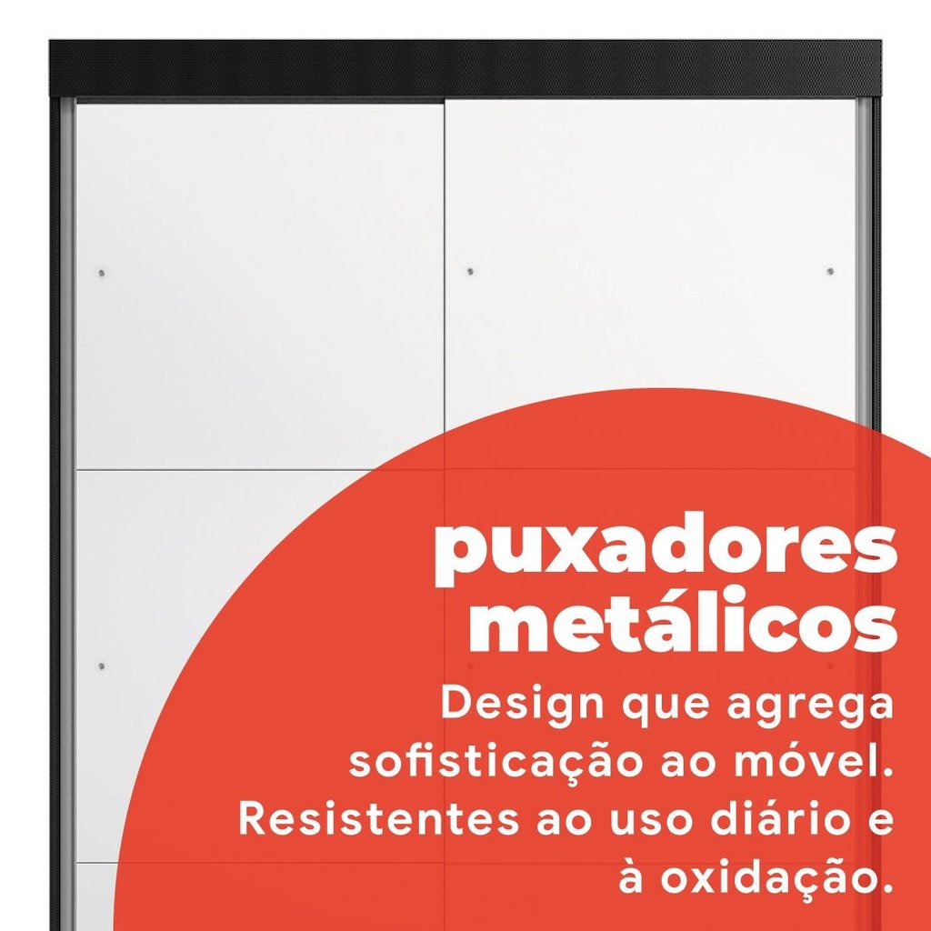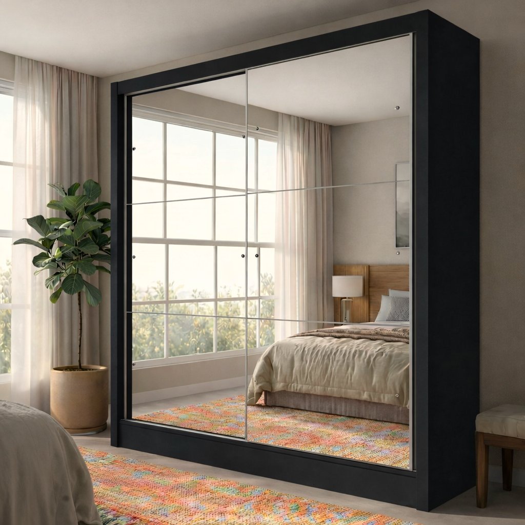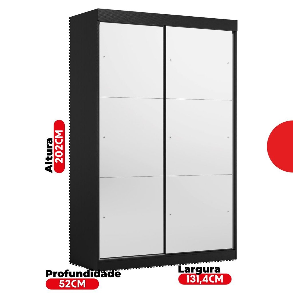 Guarda-Roupa Solteiro 2 Portas de Correr 2 Gavetas e 6 Espelhos Peônia Yescasa Preto Prime TX