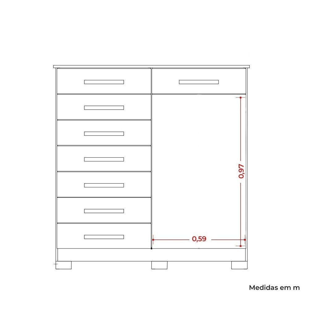 Cômoda 8 Gavetas 2 Portas com Cabideiro Verona Cinamomo/Off White