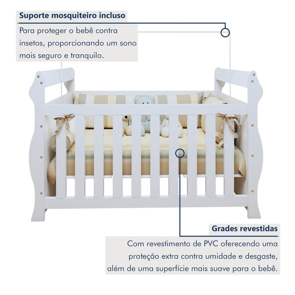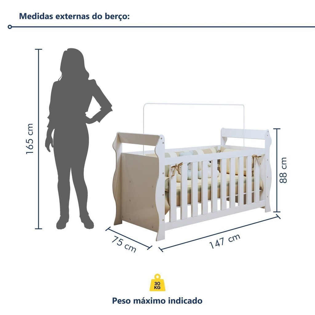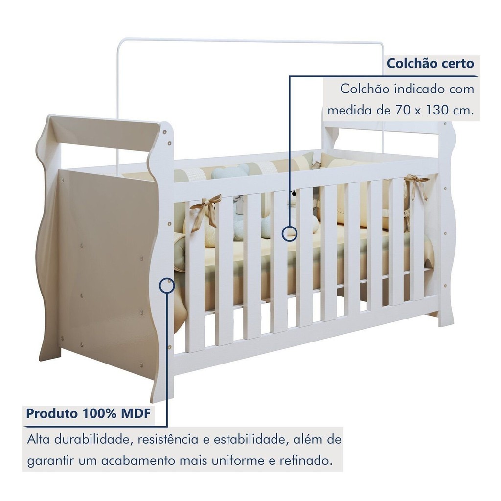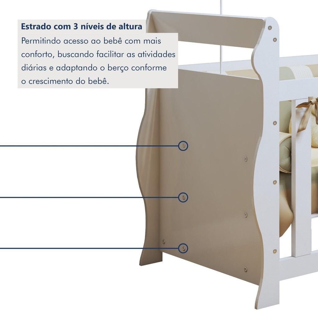Berço 3 em 1 com Regulagem de Altura 100% Mdf Star Branco