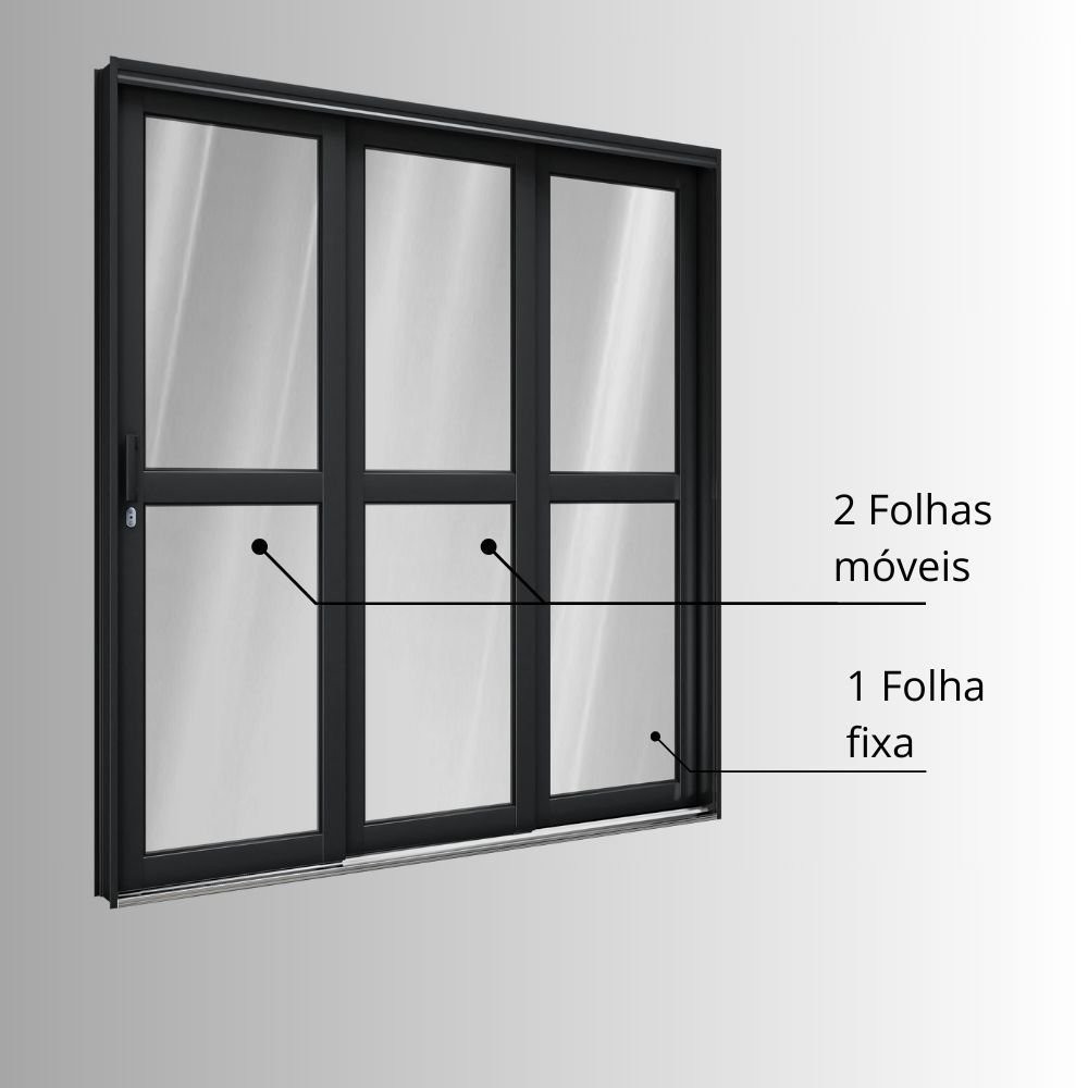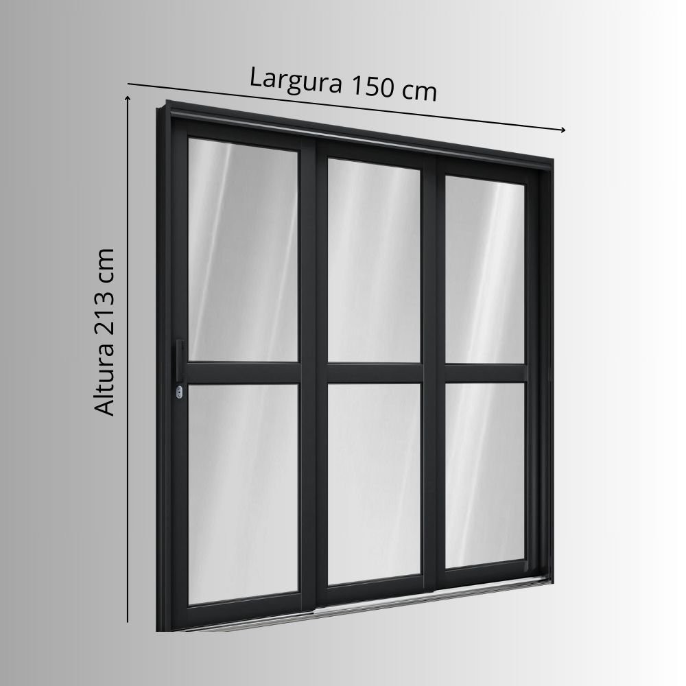 Porta de Aço de Correr Lateral com Travessa 3 Folhas 213x150cm Aço Pronto Riobras