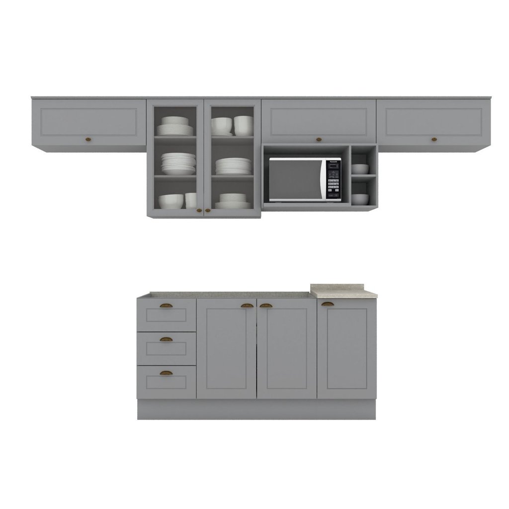 Cozinha Compacta 7 Peças Emily Espresso Móveis Cinza/Calcare