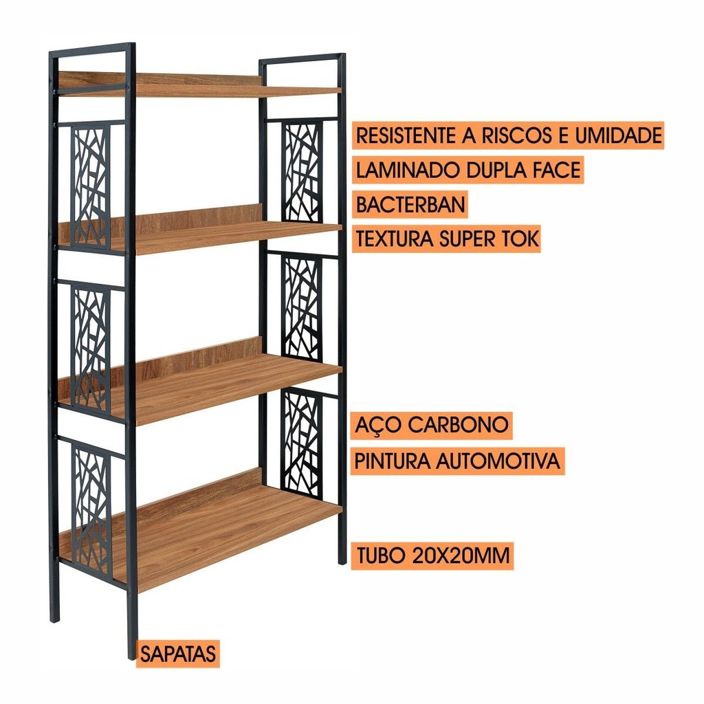 Estante Média 76cmx150cm 4 Prateleiras Beta Preto Fosco/Amendoa