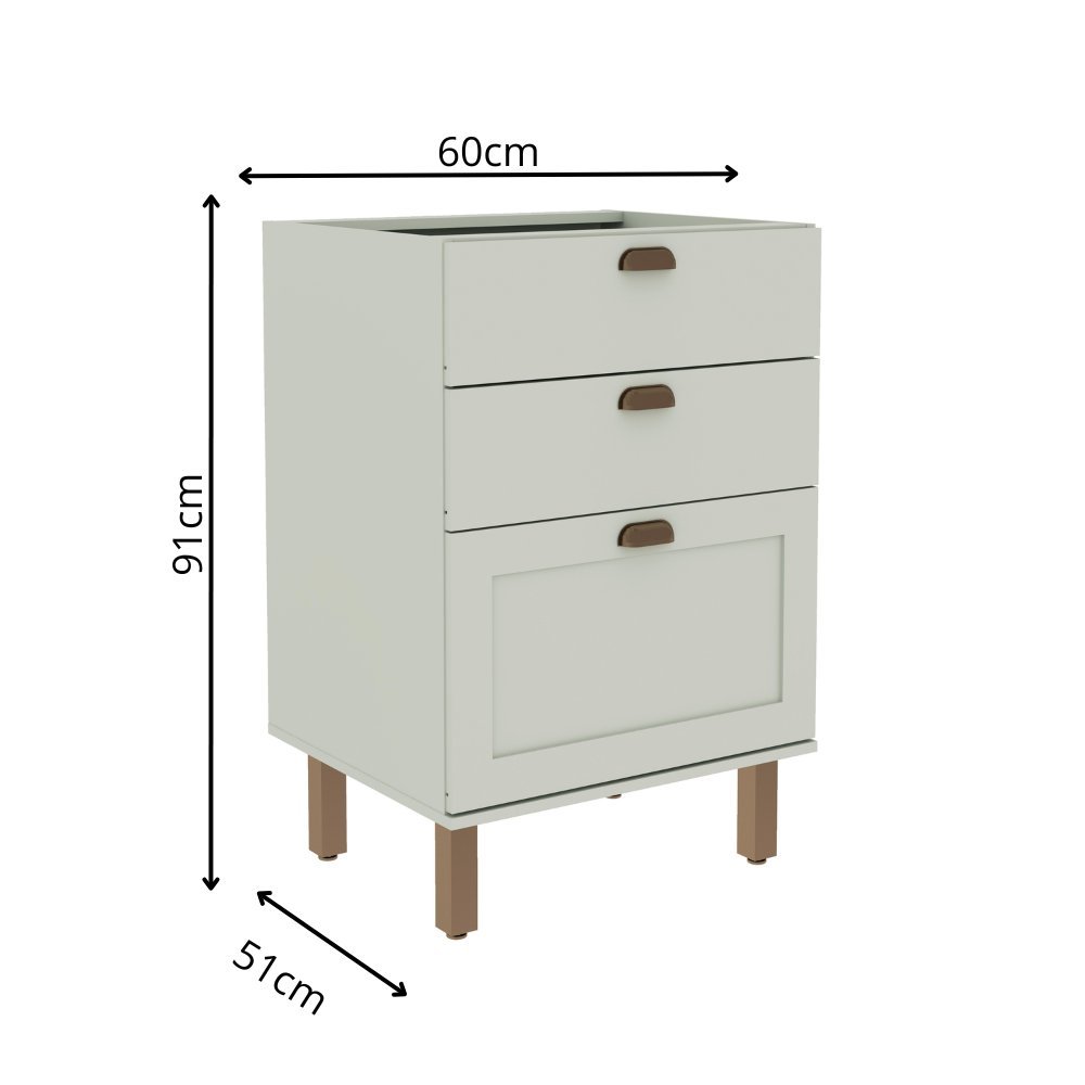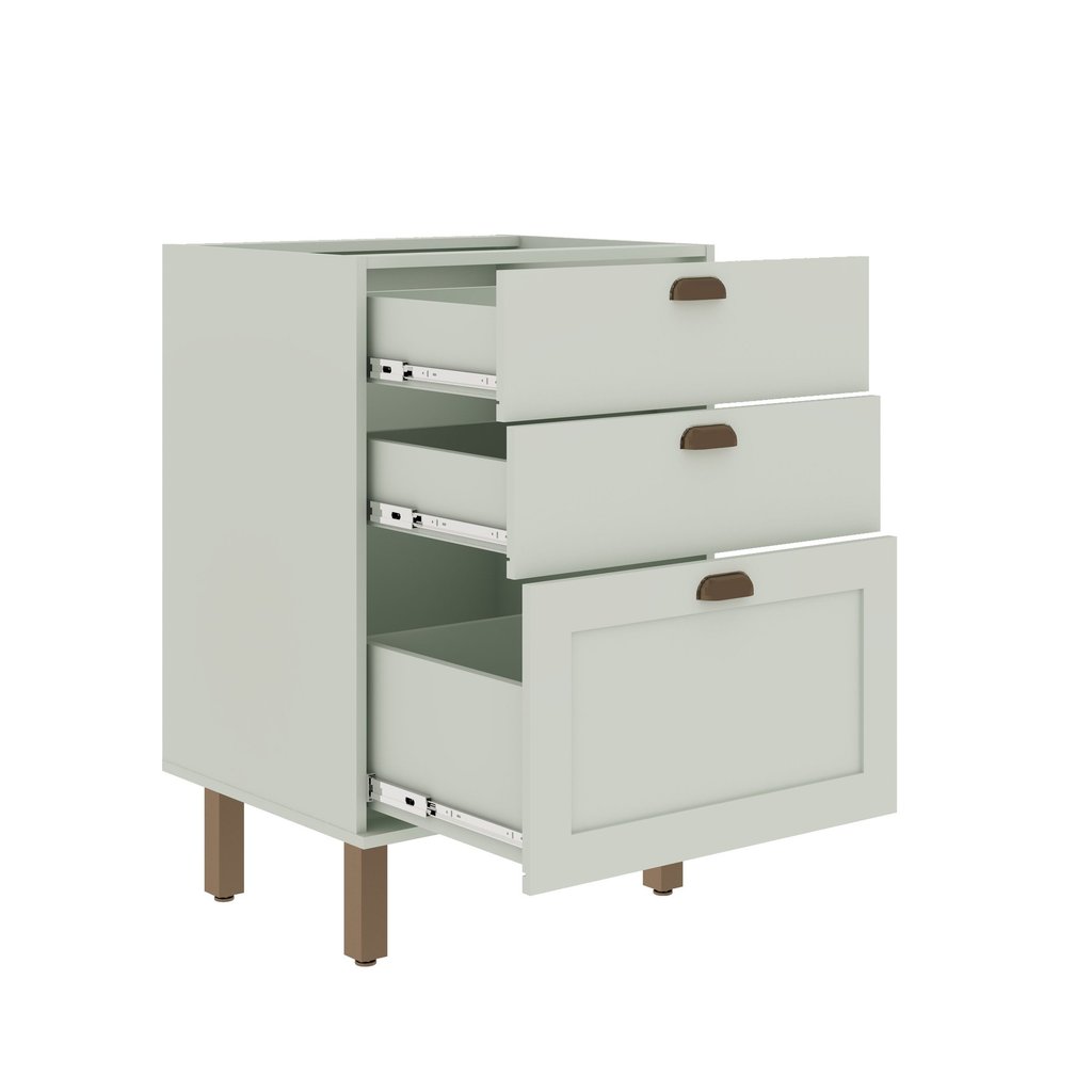 Balcão para Cozinha 3 Gavetas sem Tampo Iluminata Verde Mint