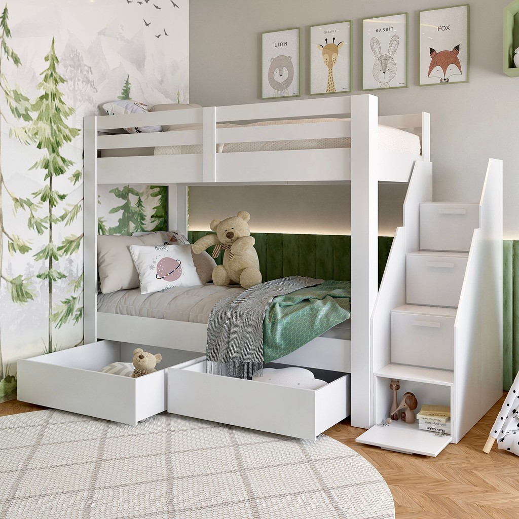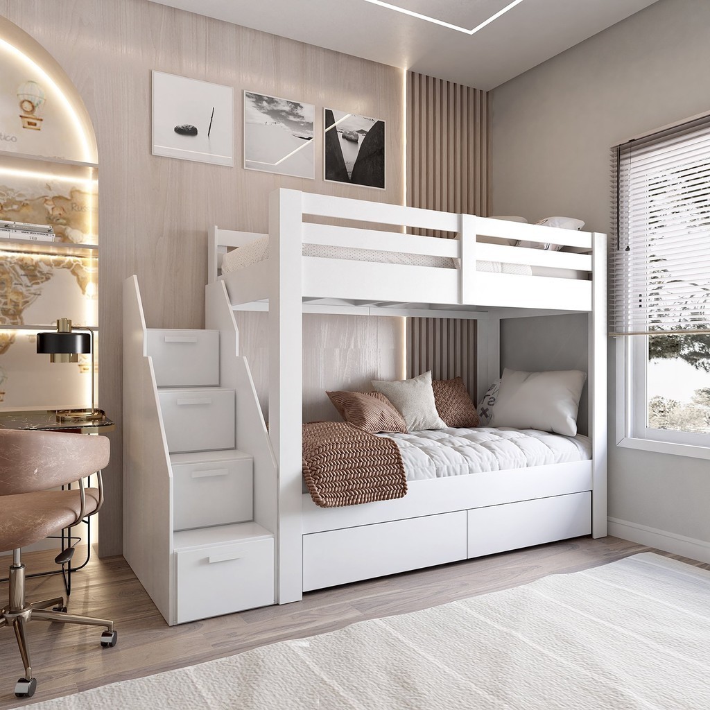 Beliche Infantil/Juvenil 2 Gavetões e Escada com 4 Nichos Star Plus Casatema Branco