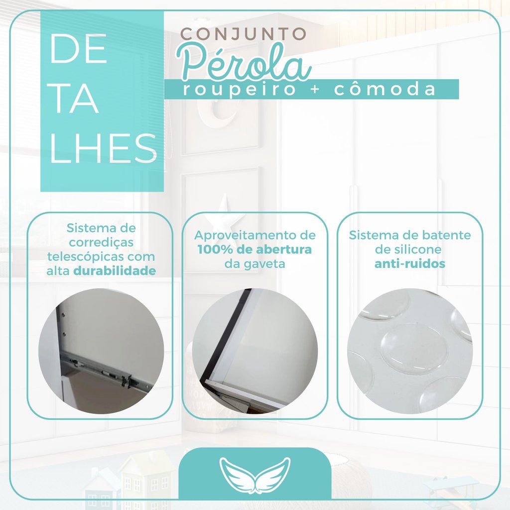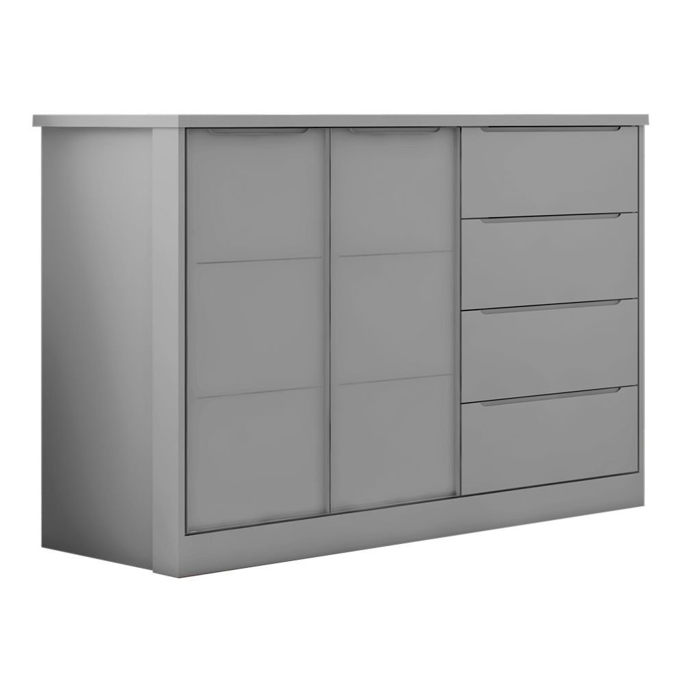 Cômoda Infantil 4 Gavetas e 2 Portas com Cabideiro Pérola Cinza Cinza