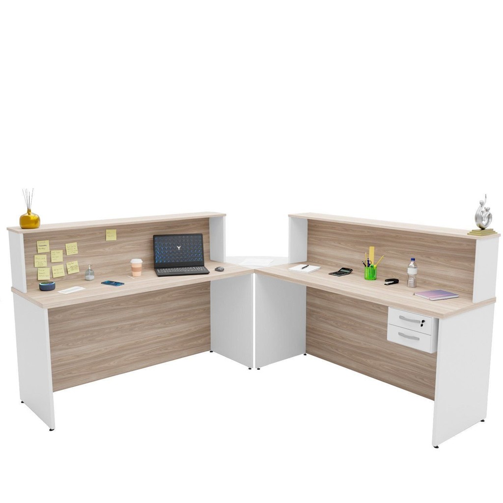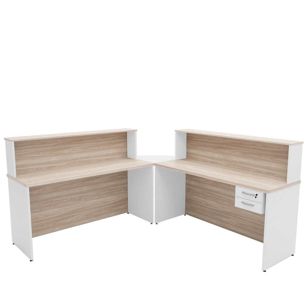 Balcão Atendimento de Canto para Recepção 2 Gavetas Carvalho/Branco