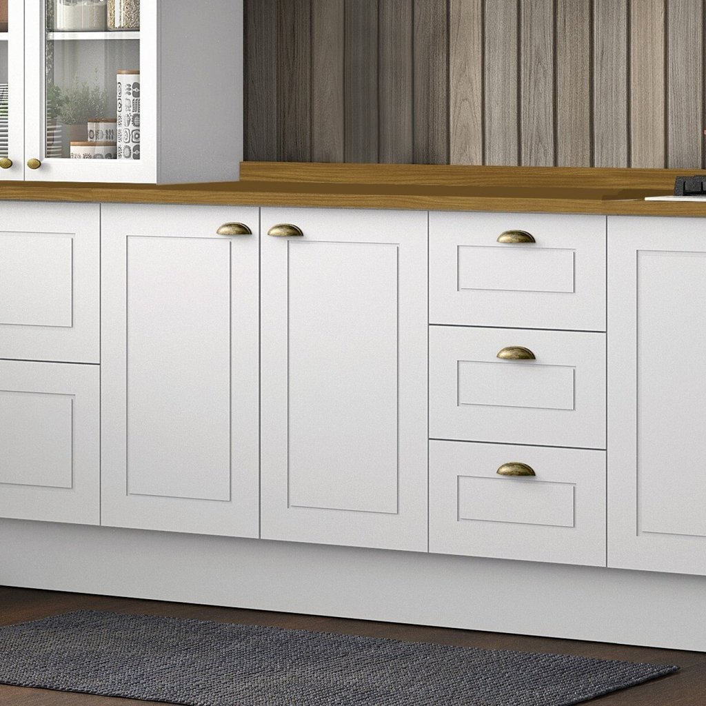 Balcão para Cozinha 3 Gavetas 2 Portas com Tampo Emily Branco HP/Nature