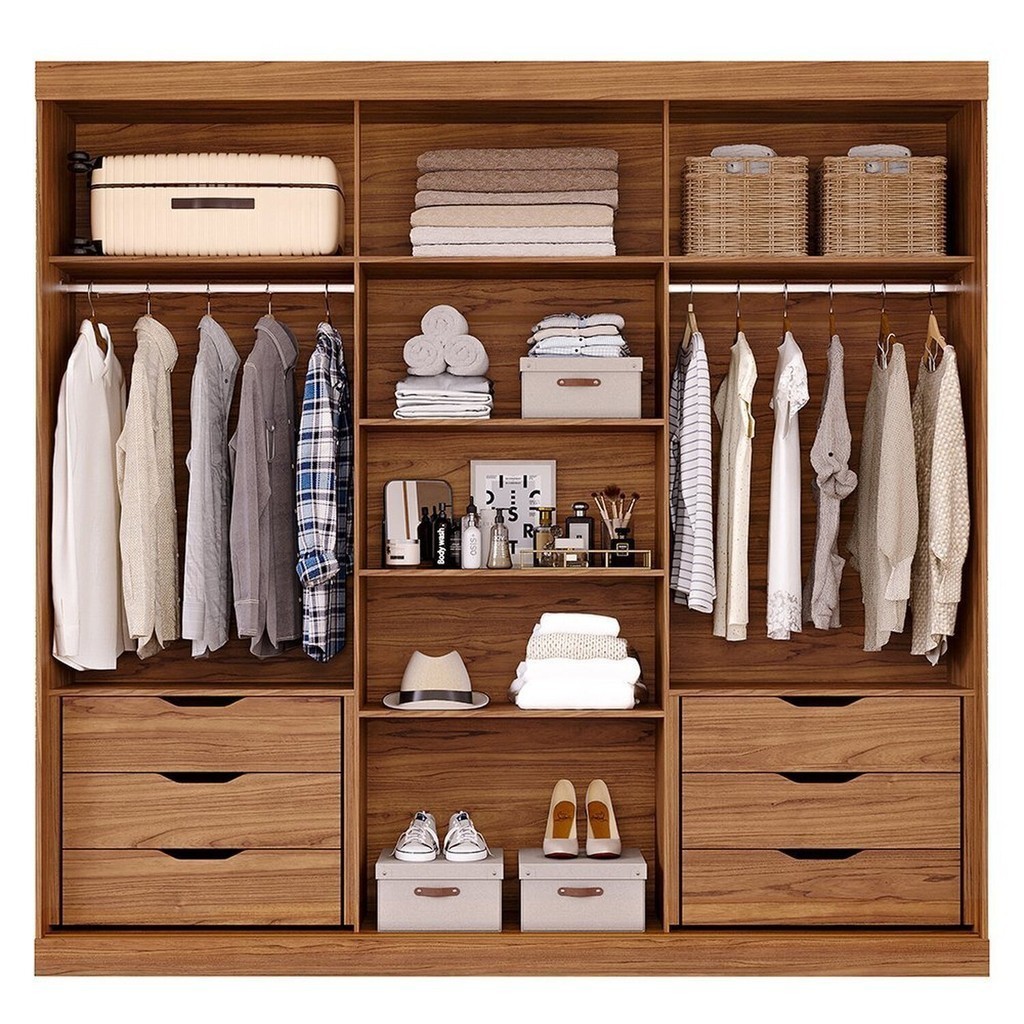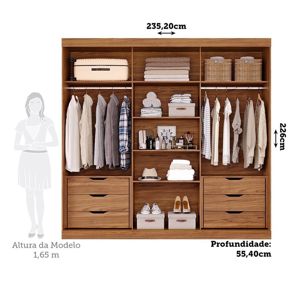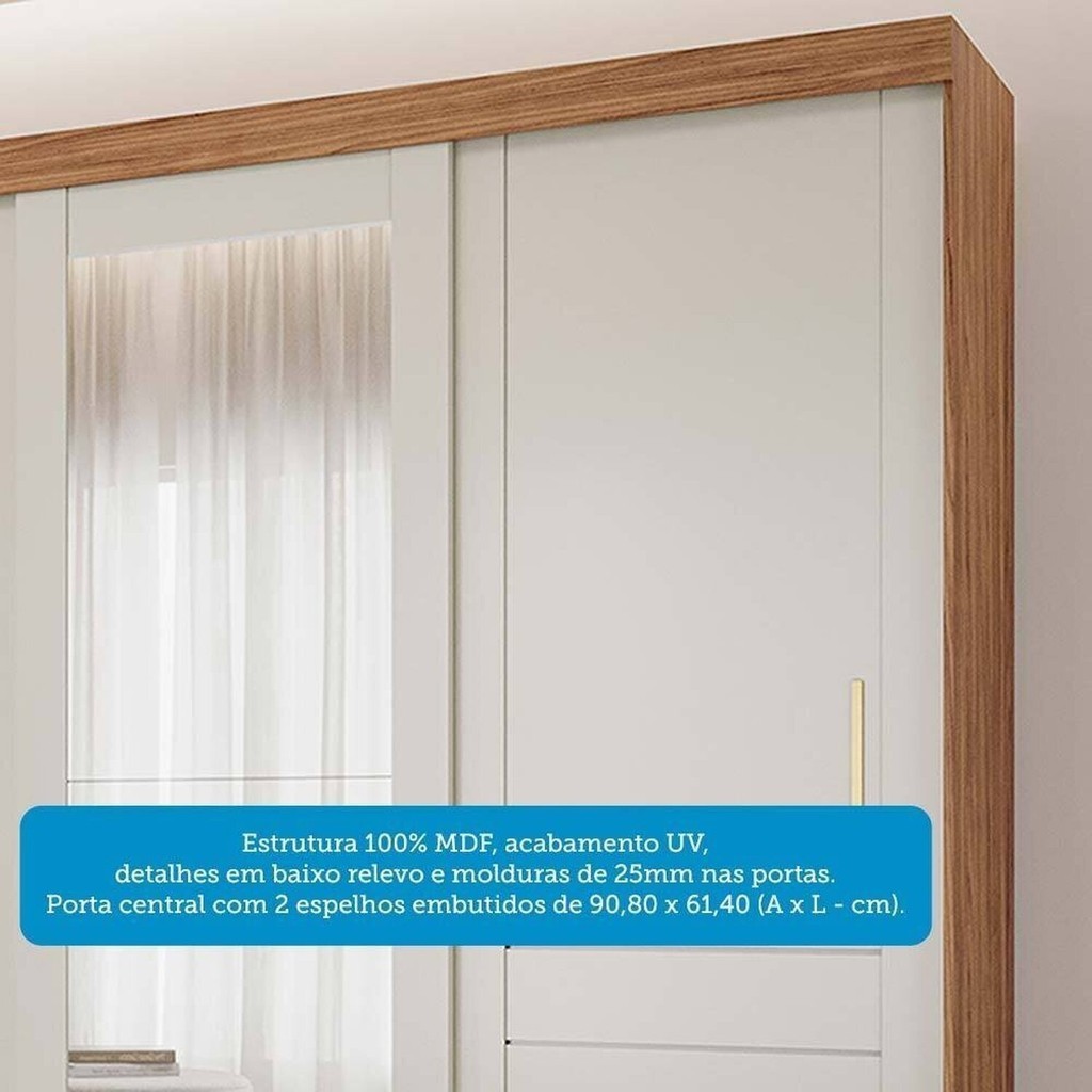 Guarda-roupa Casal 235cm 3 Portas de Correr com Espelho 100% Mdf Boston Espresso Móveis Cinamomo/Off White