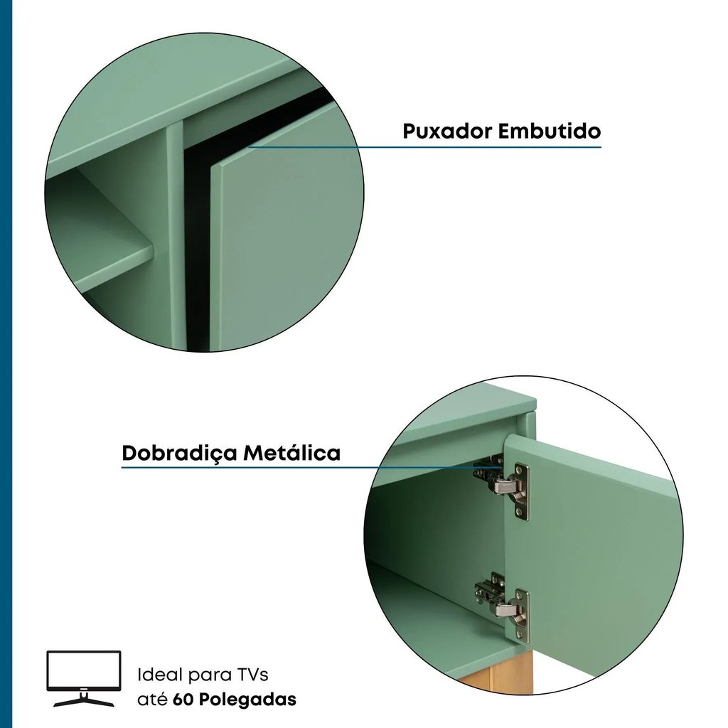 Rack para TV até 75 Polegadas 180cm 2 Portas Retrô Bento Yescasa Salvia/Amendôa