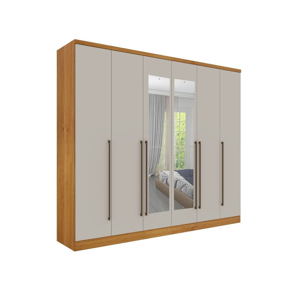 Guarda-Roupa Casal com Espelho 6 Portas 8 Gavetas 270cm Sevilla Cinamomo/Off White