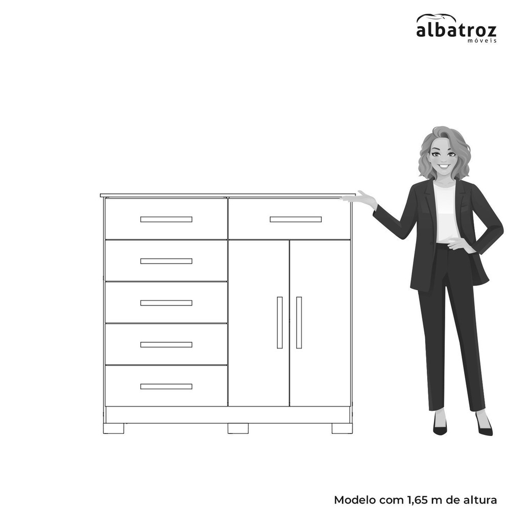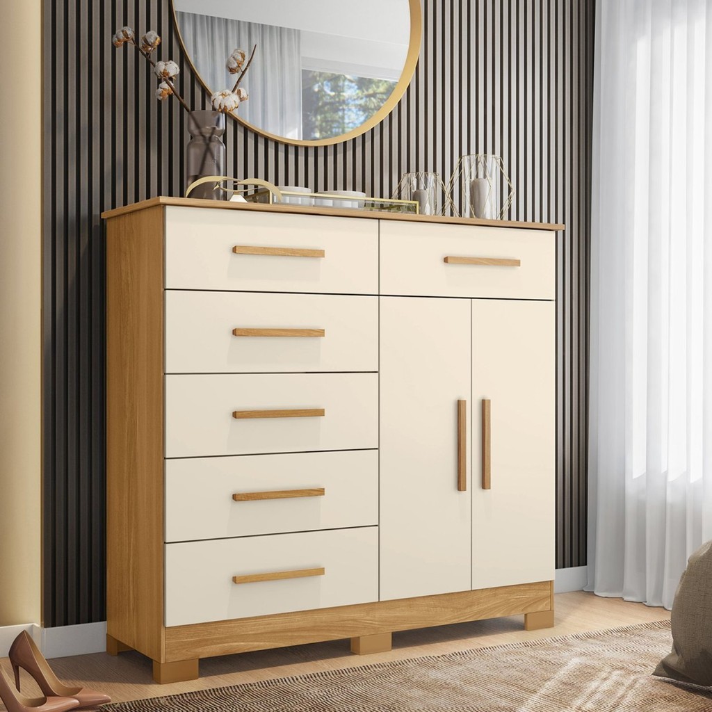 Cômoda 2 Portas 6 Gavetas Xangai Cinamomo/Off White