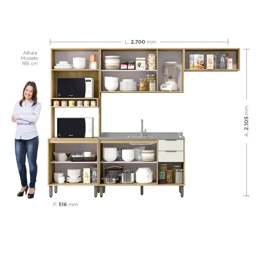 Cozinha Modulada Glória 4 Peças com Aéreo 1200 3 Portas e Torre 2 Fornos Castanho/Off White