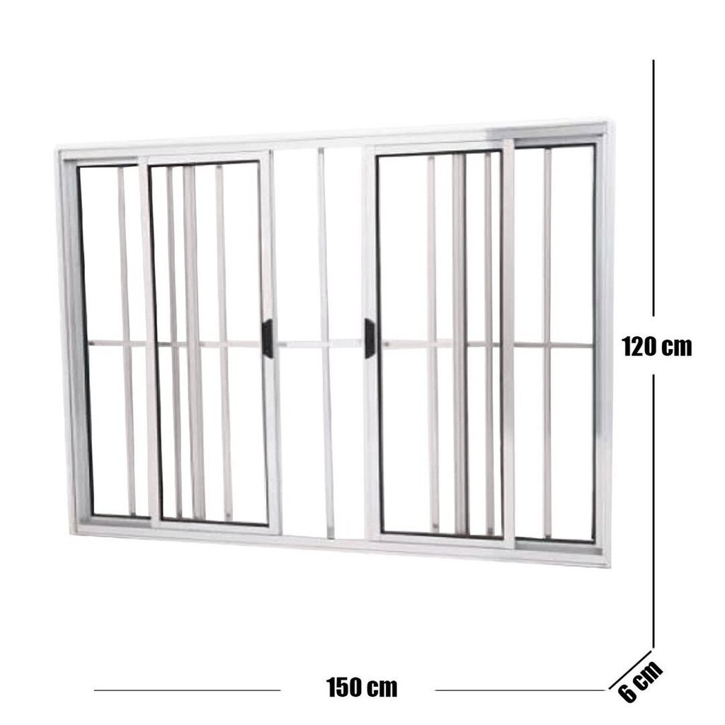 Janela Vitrô de Alumínio 4 Folhas 120 X 150cm Modular Brilhante com Grade 120cm x 150cm