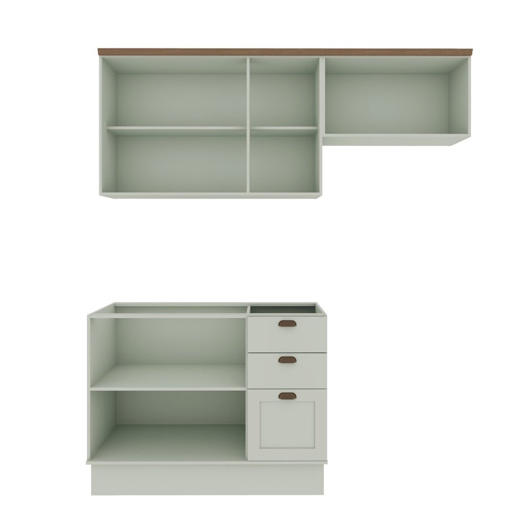 Cozinha Completa Aéreo 4 Portas Balcão 2 Portas 3 Gavetas com Tampo e Rodapé luminata Verde Mint/Ébano